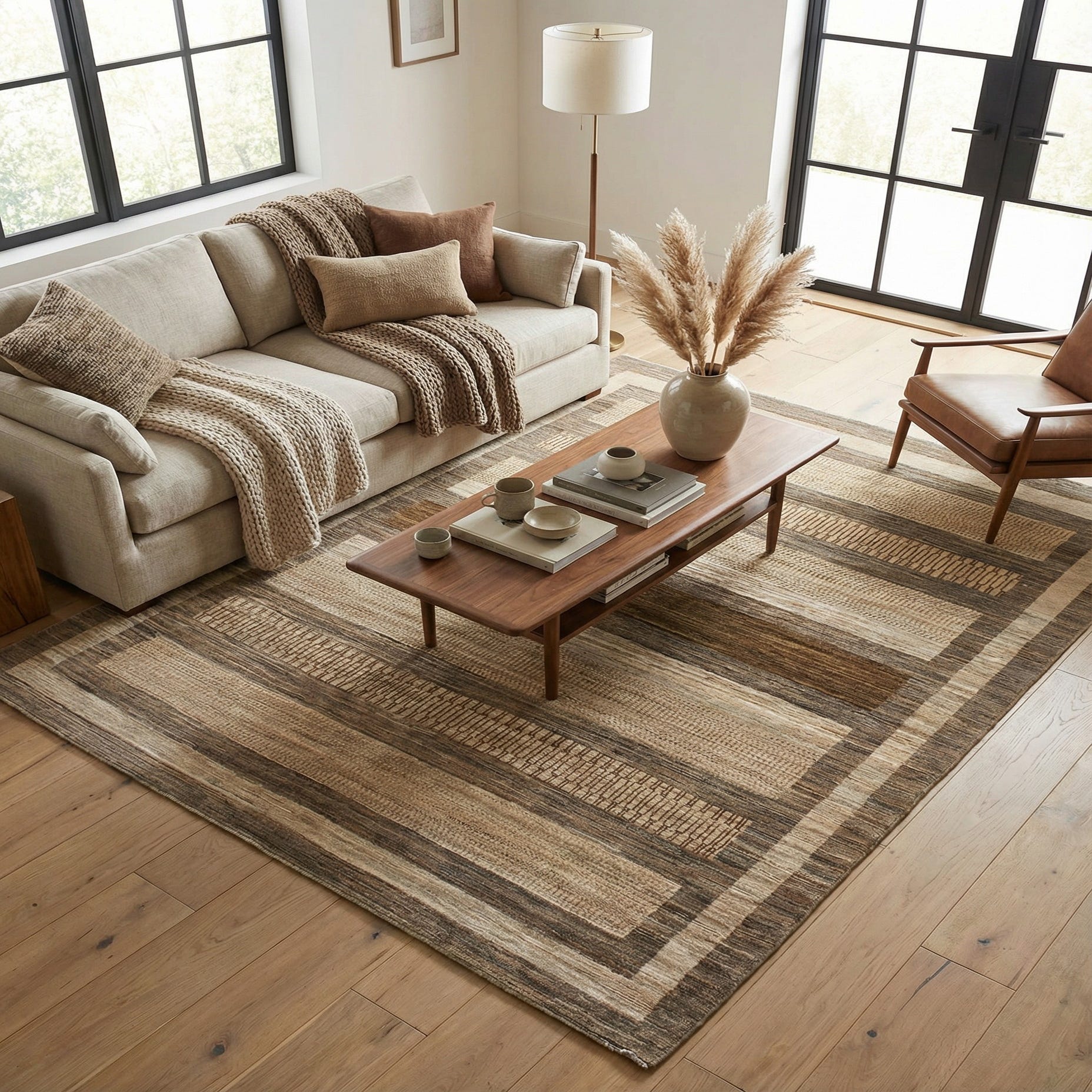 Primary color is Beige. Colors in this rug include: Beige, Brown, Light Brown.
