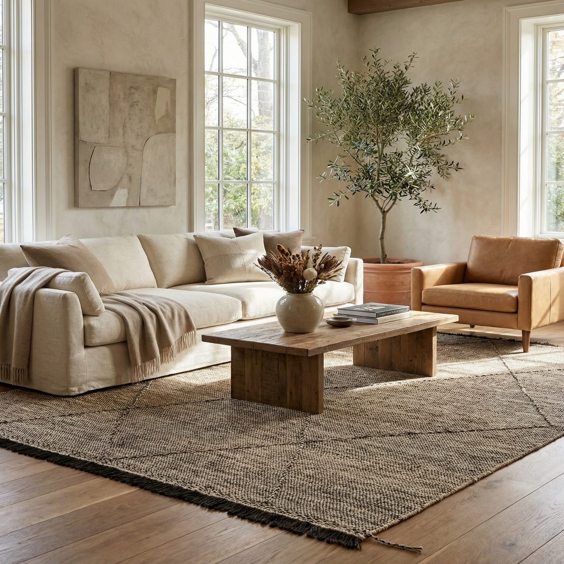 Primary color is Beige. Colors in this rug include: Beige, Brown.