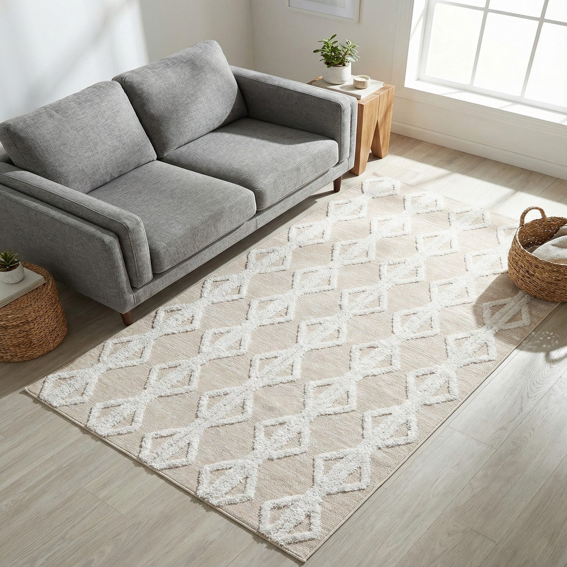 Primary color is Beige. Colors in this rug include: Beige, Ivory.