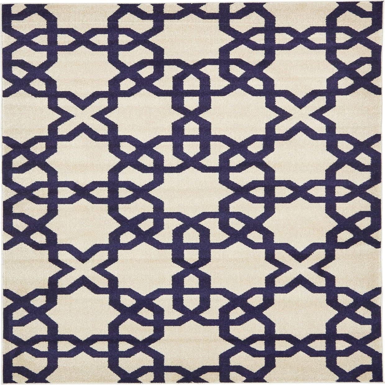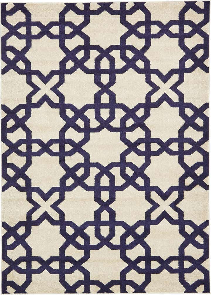Primary color is Beige. Colors in this rug include: Beige, Navy Blue.