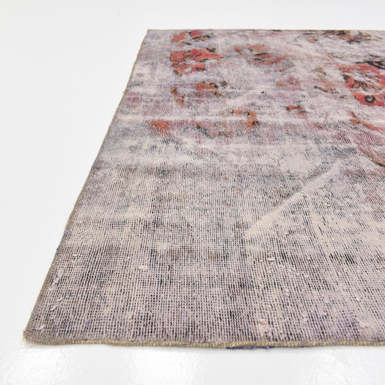 This Persian Ultra Vintage rug is an antique Persian Rug that has been washed, over-dyed, and then shaved down to a low pile. Look at the detail pictures to fully appreciate the uniqueness of this piece.