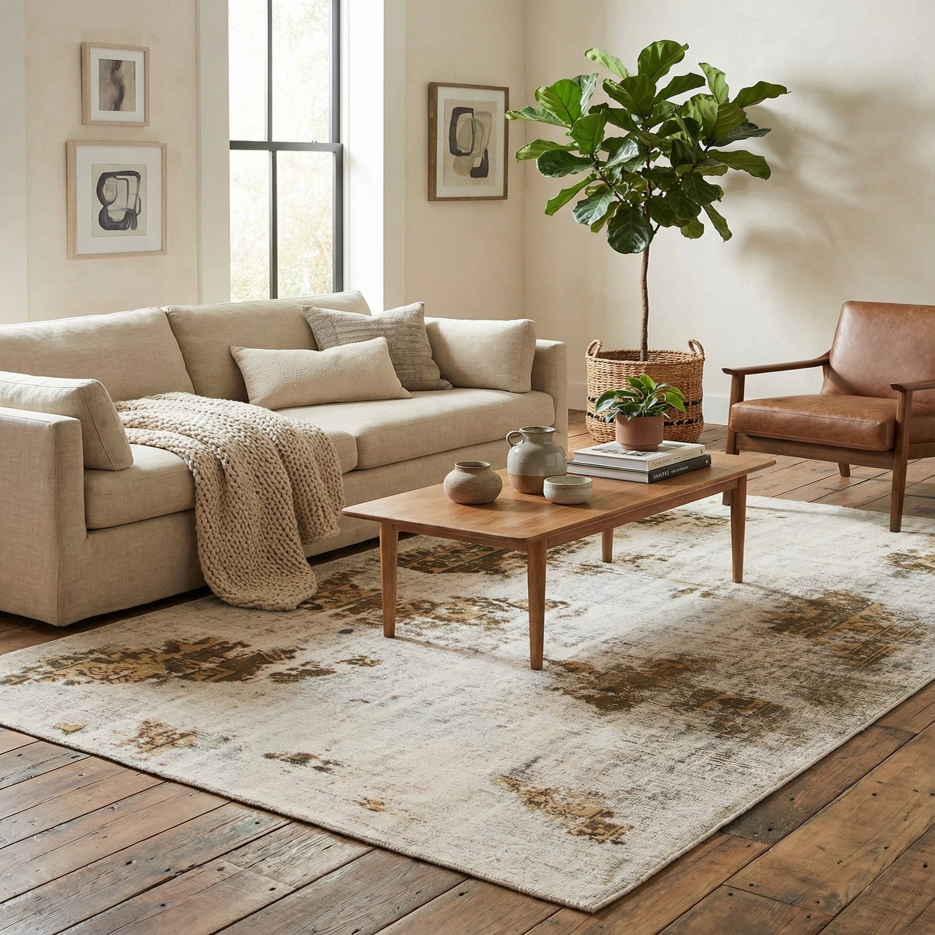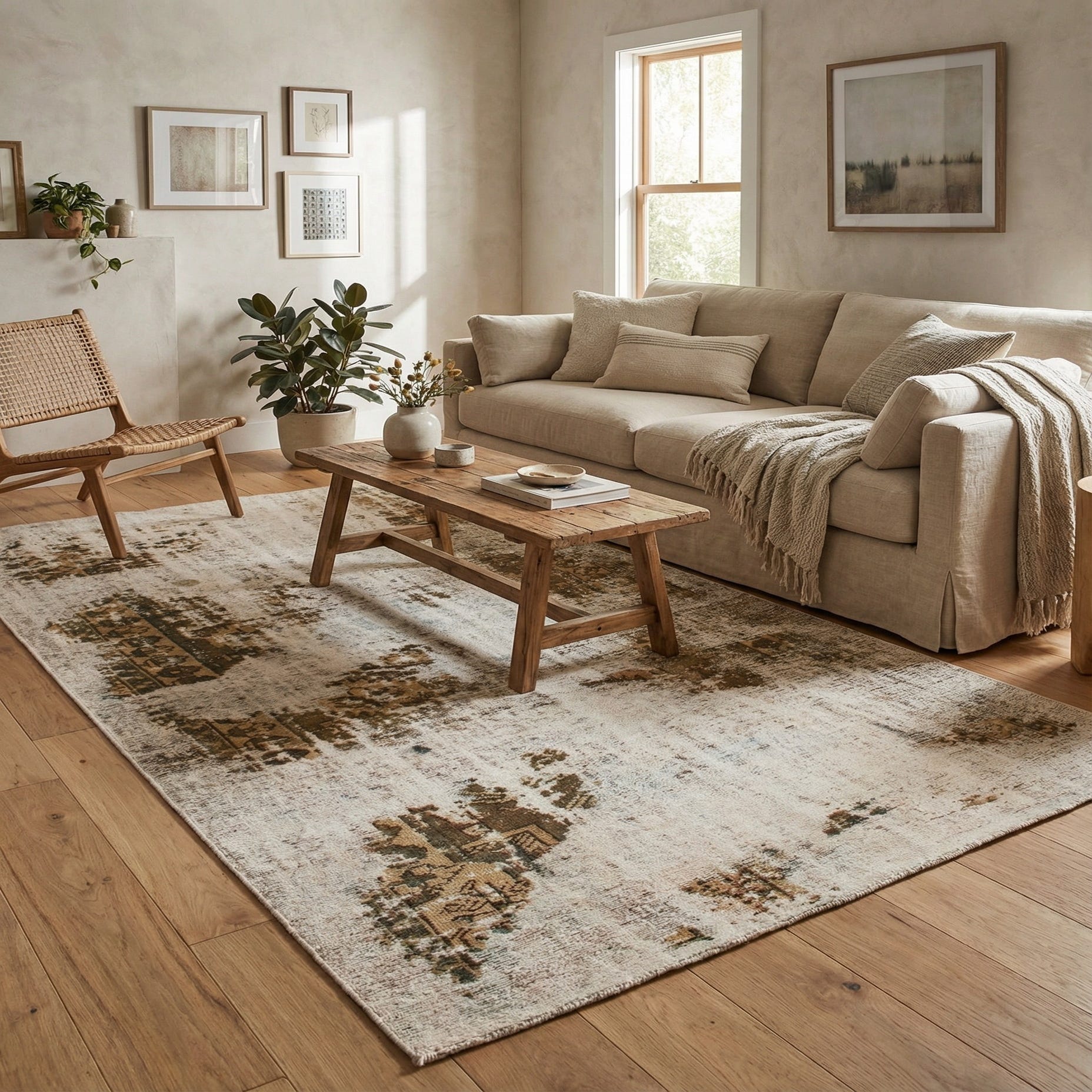 Primary color is Beige. Colors in this rug include: Beige, Brown, Light Brown, Tan, Olive.