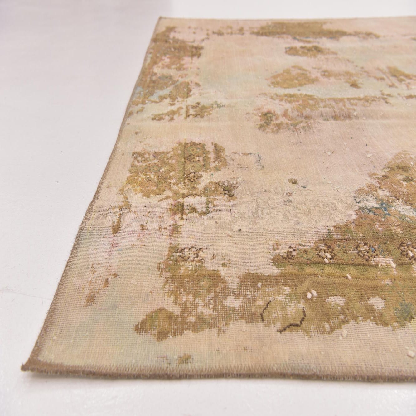 This Persian Ultra Vintage rug is an antique Persian Rug that has been washed, over-dyed, and then shaved down to a low pile. Look at the detail pictures to fully appreciate the uniqueness of this piece.