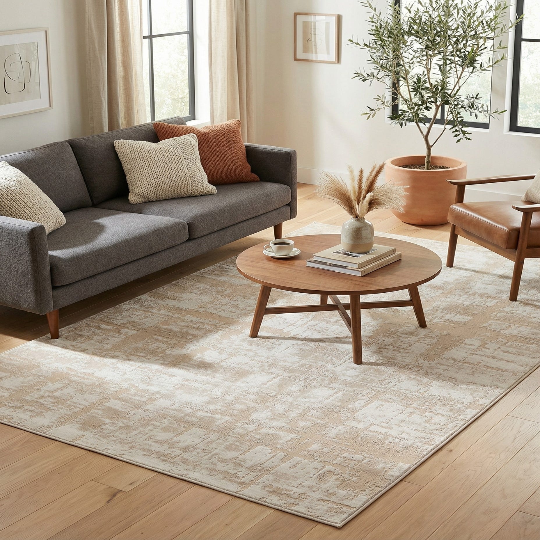 Primary color is Beige. Colors in this rug include: Beige, Ivory.