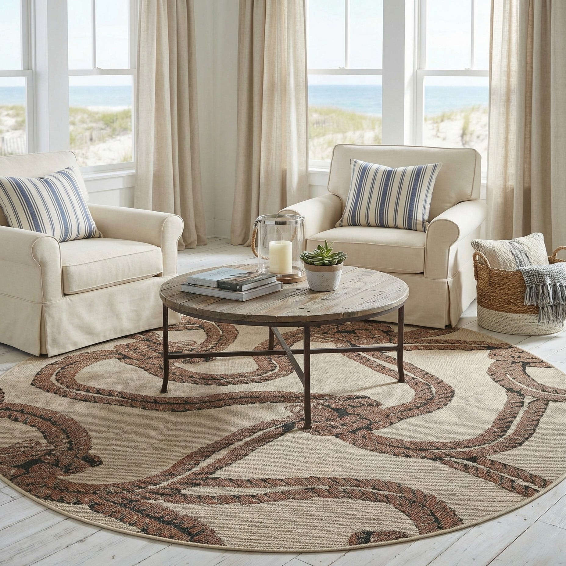 6' x 6' Washable Coastal Indoor / Outdoor Round Rug