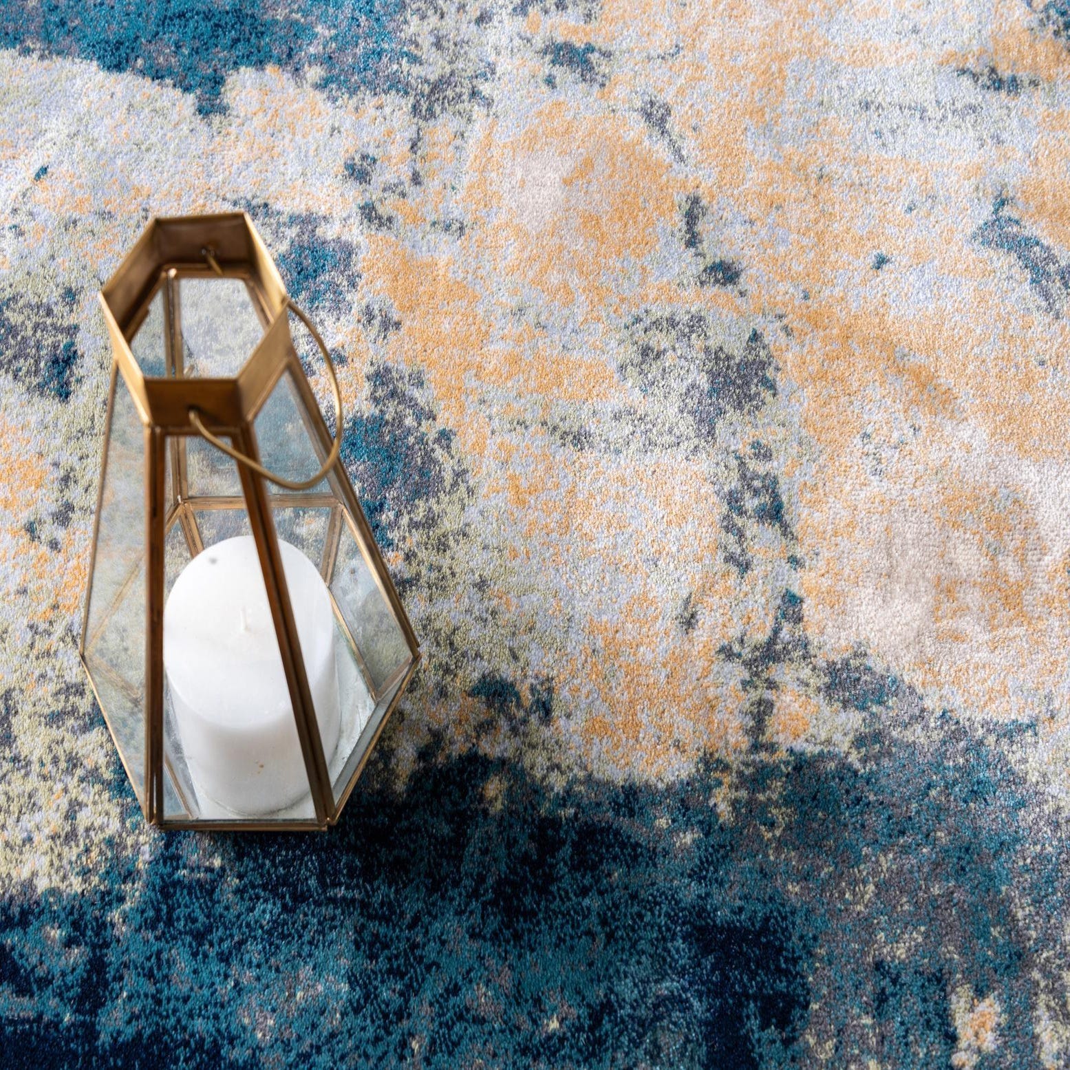 Primary color is Beige. Colors in this rug include: Beige, Blue, Light Blue, Navy Blue, Tan.