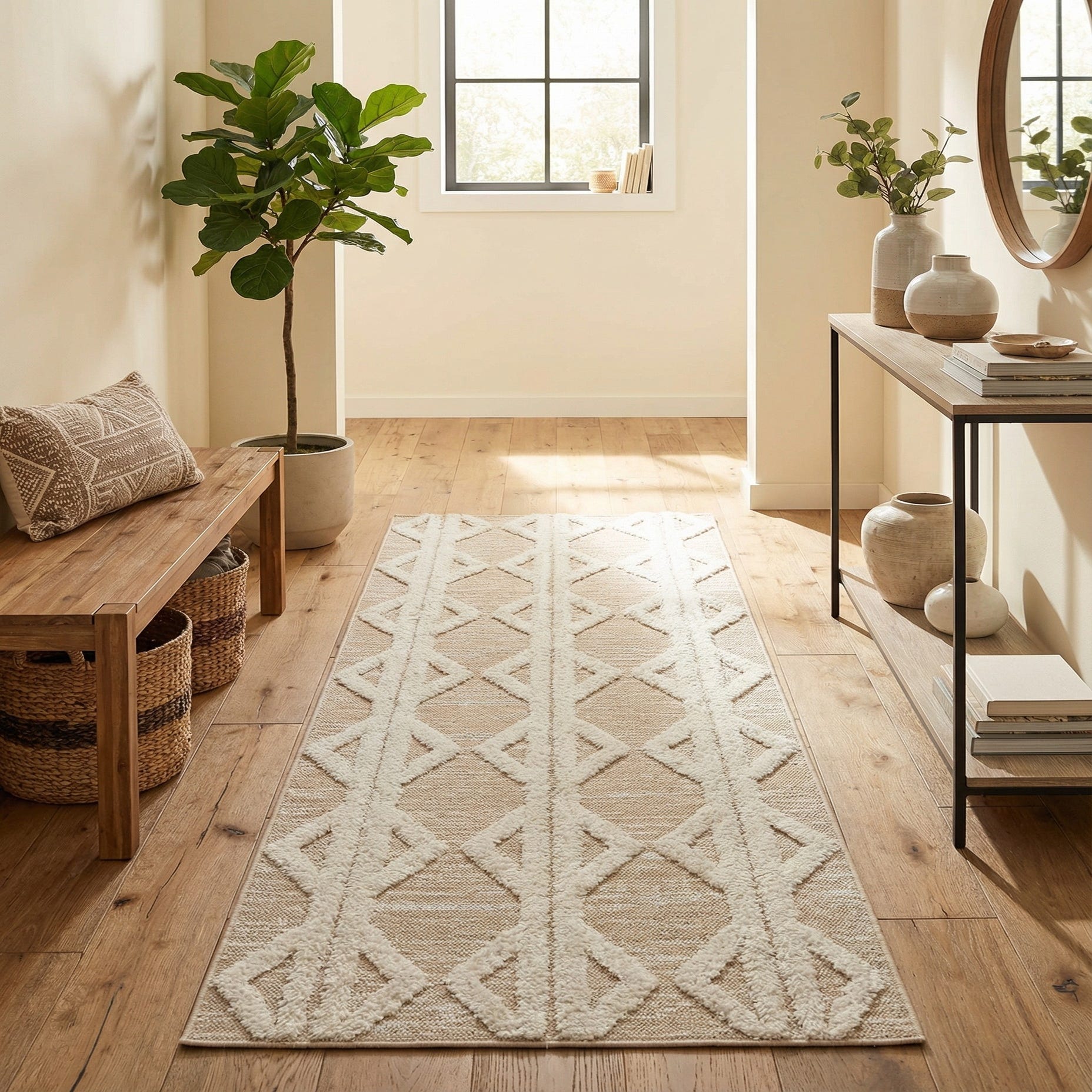Primary color is Beige. Colors in this rug include: Beige, Ivory.