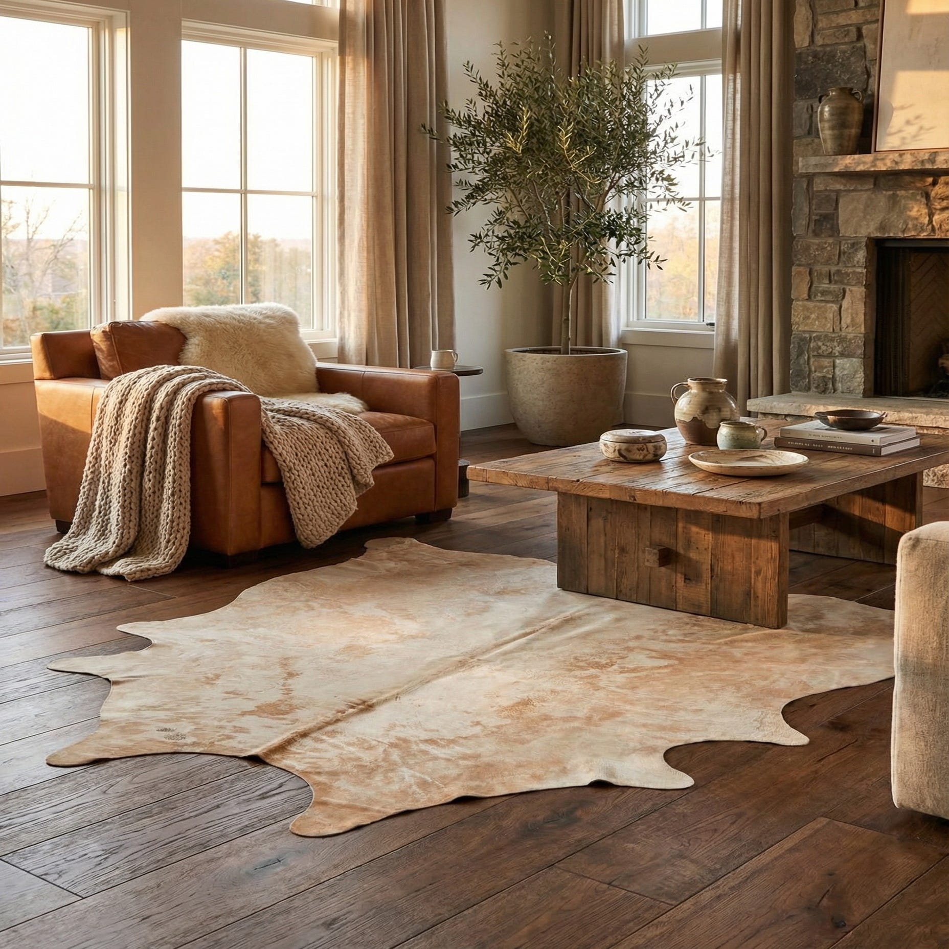 6' 4 x 6' 6 Cowhide Leather Square Rug