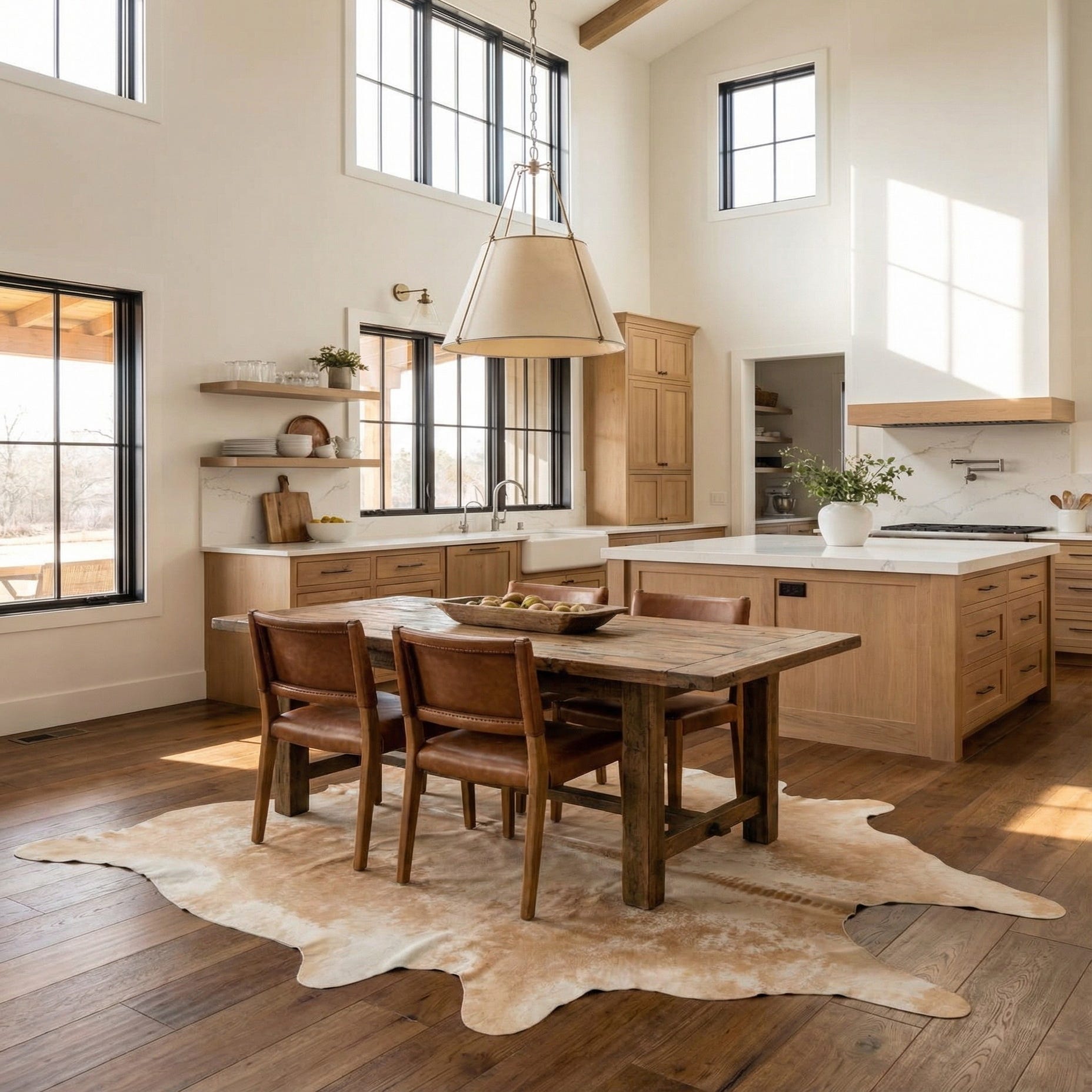 6' 1 x 6' 7 Cowhide Leather Square Rug