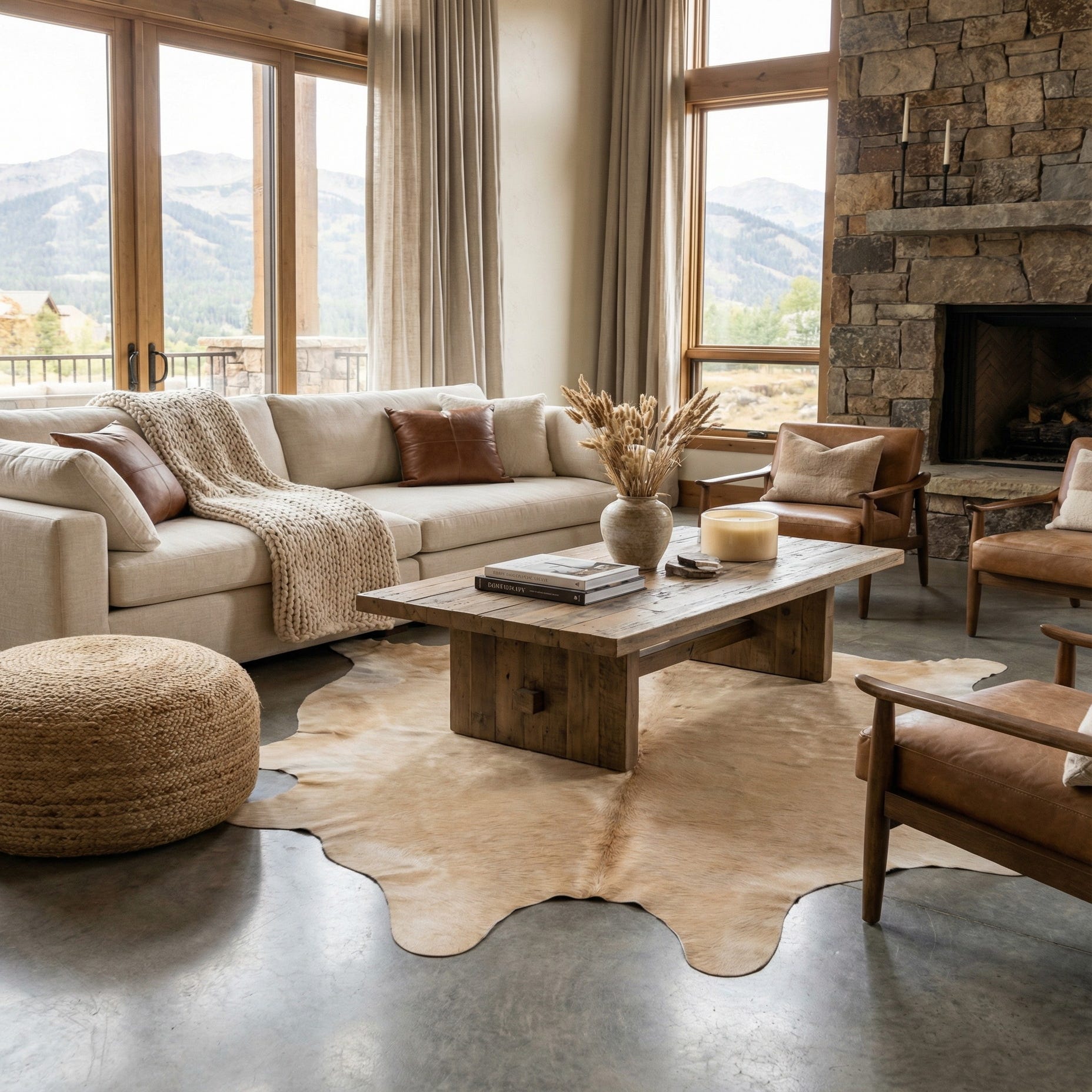 6' 2 x 6' 8 Cowhide Leather Square Rug