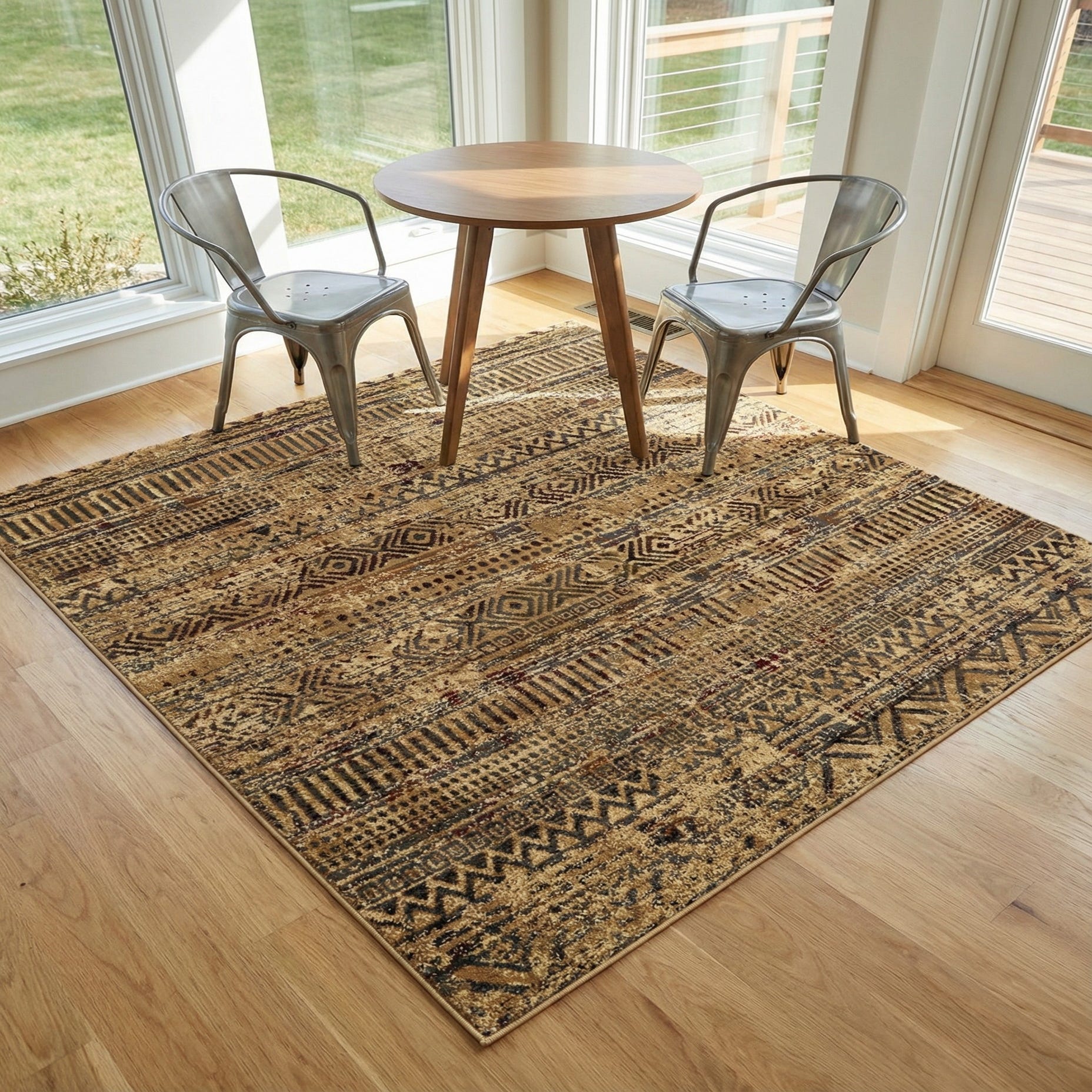 Primary color is Beige. Colors in this rug include: Beige, Brown, Gray, Olive, Red.