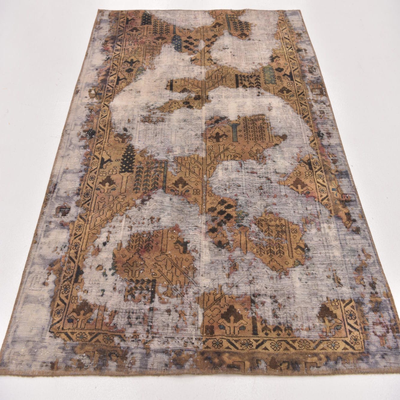 This Persian Ultra Vintage rug is an antique Persian Rug that has been washed, over-dyed, and then shaved down to a low pile. Look at the detail pictures to fully appreciate the uniqueness of this piece.