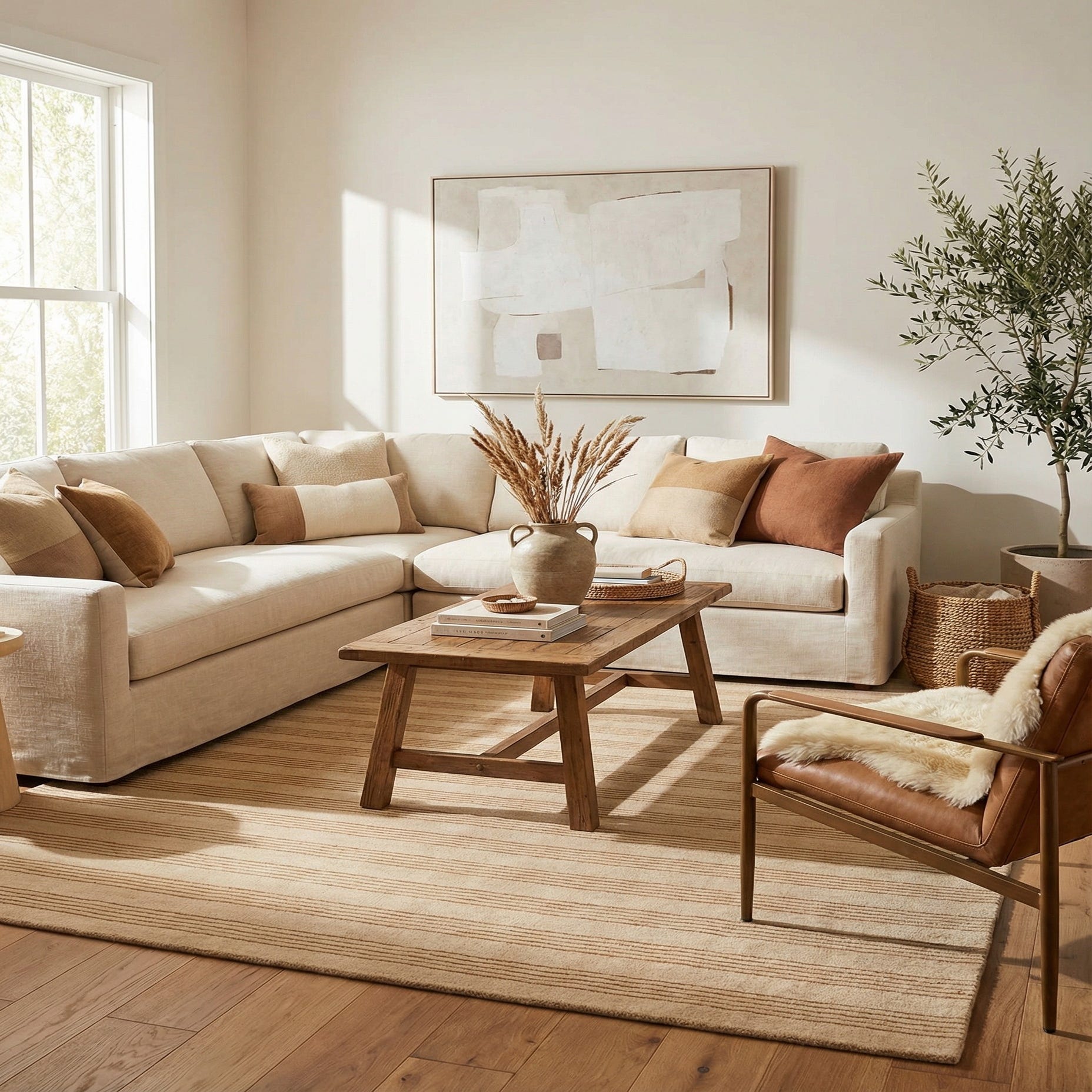 Primary color is Beige. Colors in this rug include: Beige, Brown.