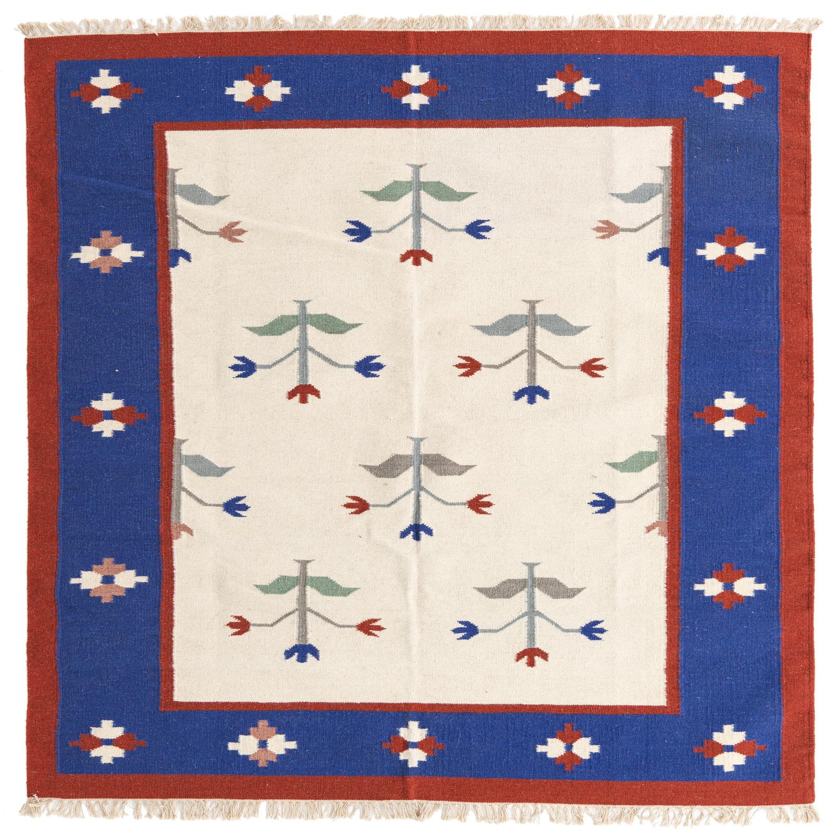 6' 6 x 7' 10 Hand Woven Kilim Dhurrie Wool Rug