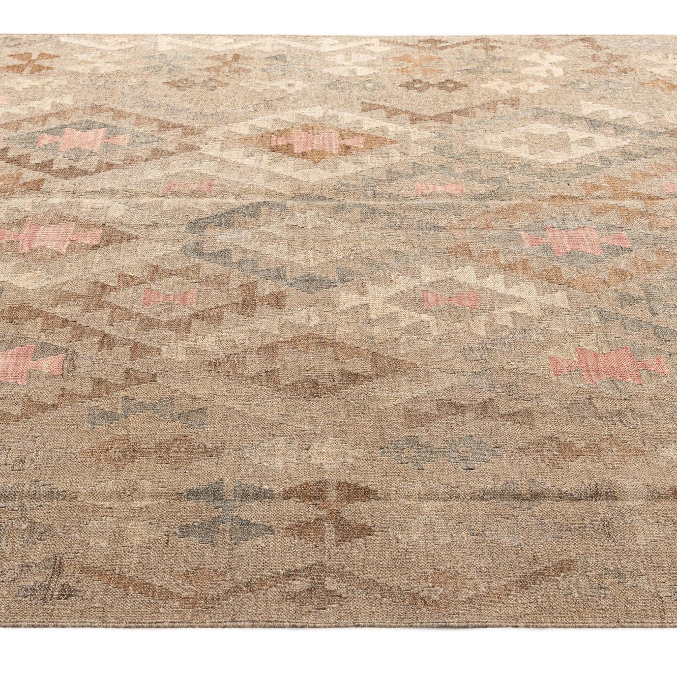 Primary color is Beige. Colors in this rug include: Beige, Brown, Light Brown, Pink, Gray.