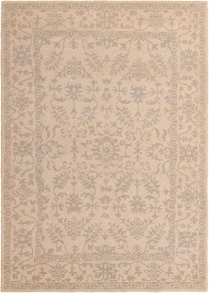 Primary color is Beige. Colors in this rug include: Beige, Gray.