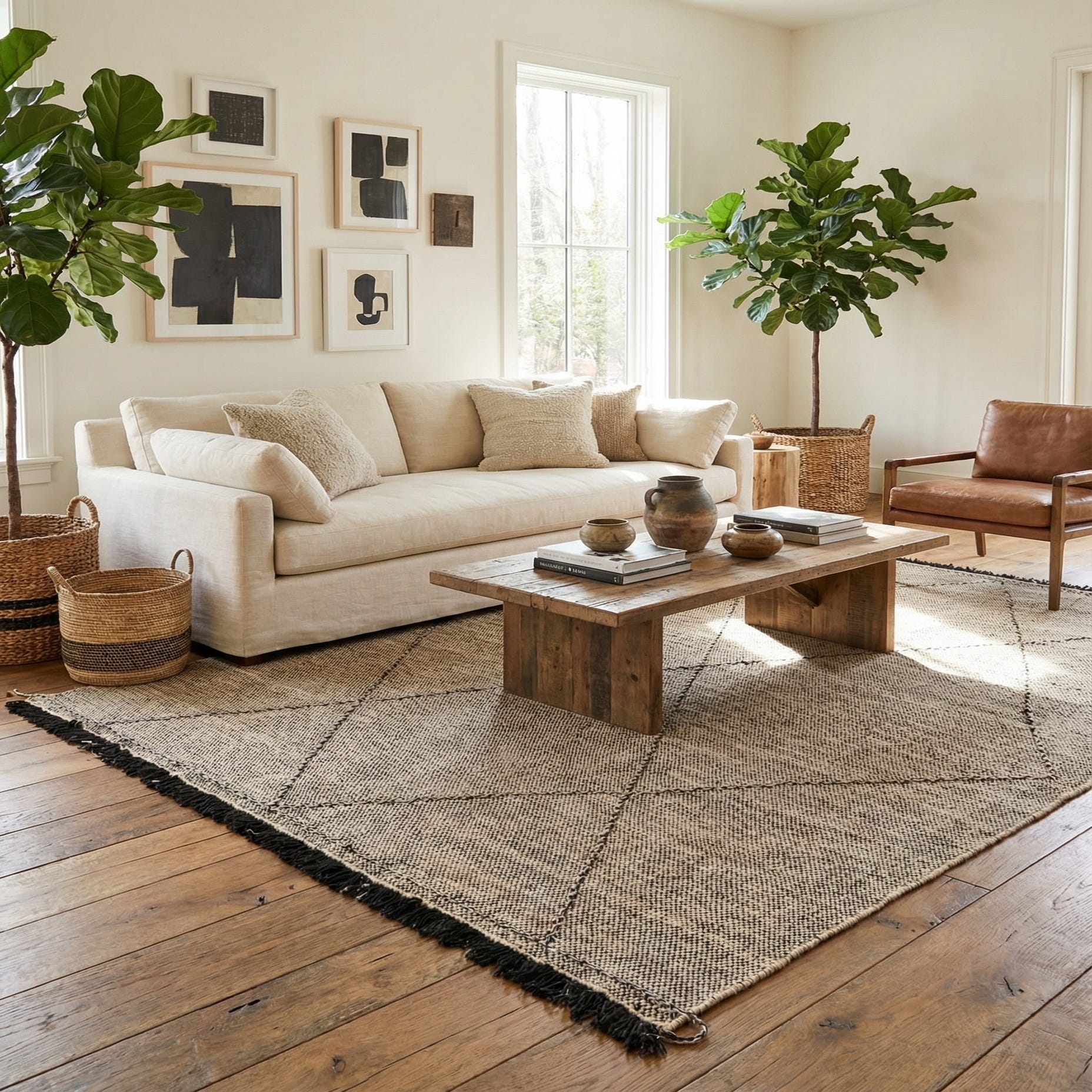 Primary color is Beige. Colors in this rug include: Beige, Brown.