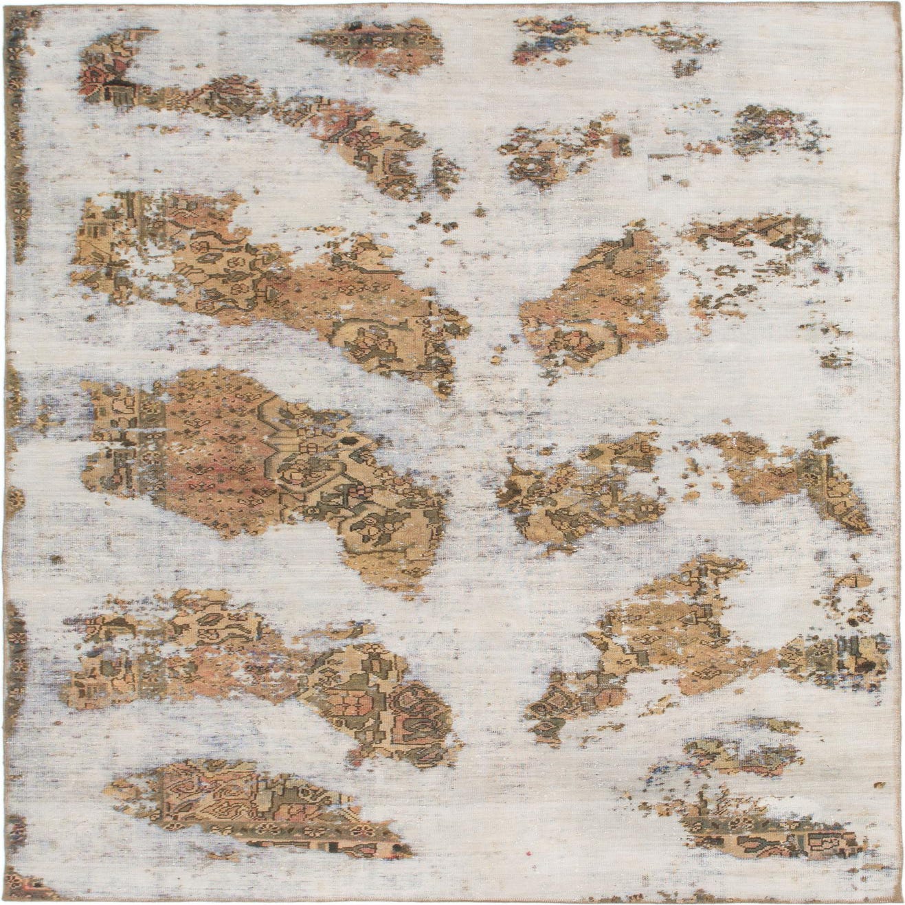 This Persian Ultra Vintage rug is an antique Persian Rug that has been washed, over-dyed, and then shaved down to a low pile. Look at the detail pictures to fully appreciate the uniqueness of this piece.