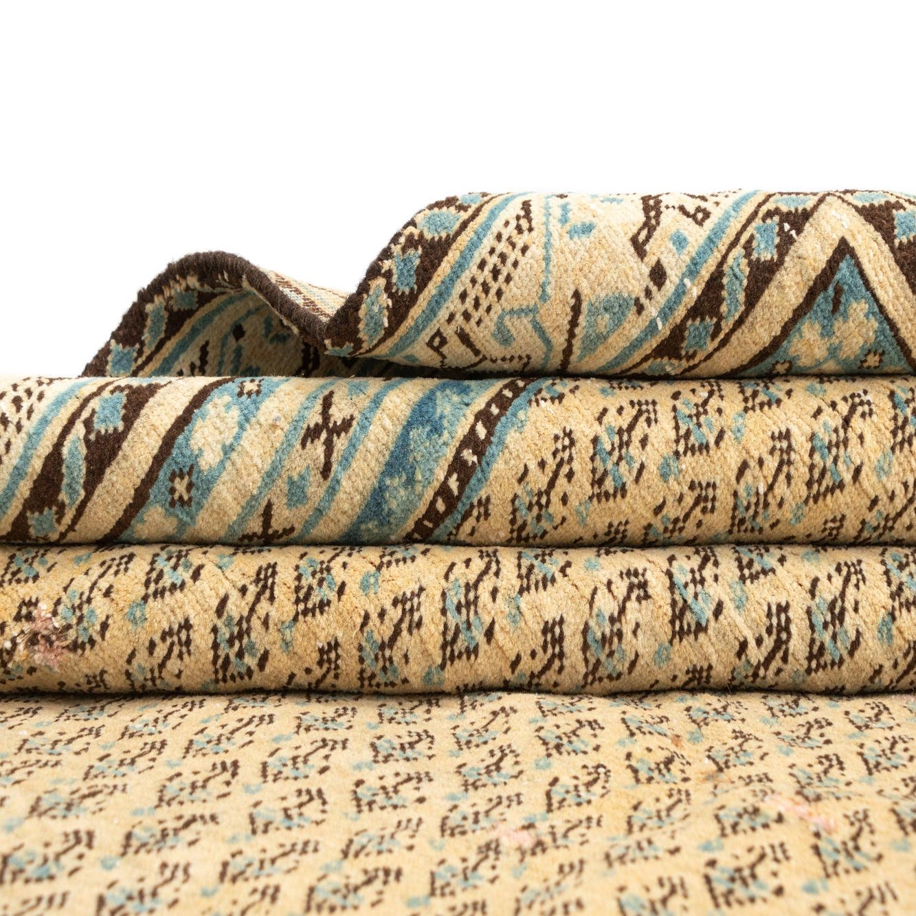 Primary color is Beige. Colors in this rug include: Beige, Beige, Blue, Light Brown, Cream, Orange.