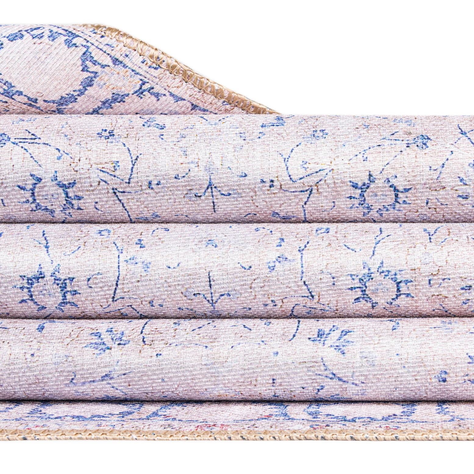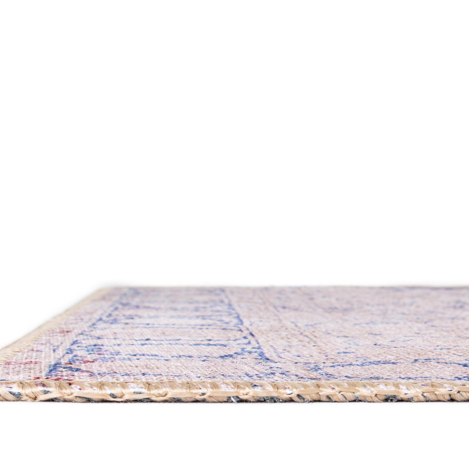 Primary color is Beige. Colors in this rug include: Beige, Violet, Red.