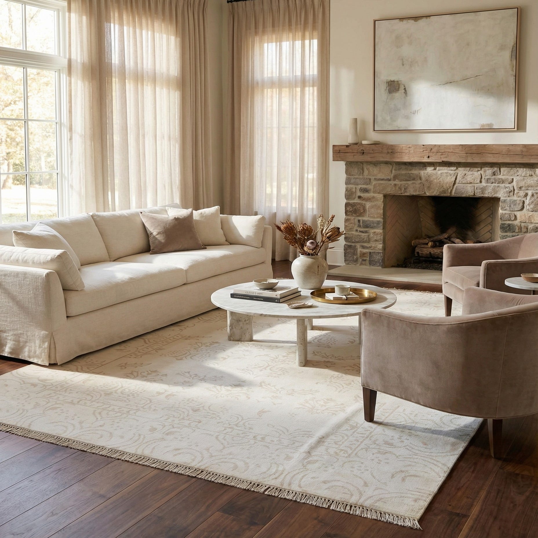 Primary color is Beige. Colors in this rug include: Beige, Brown, Cream.