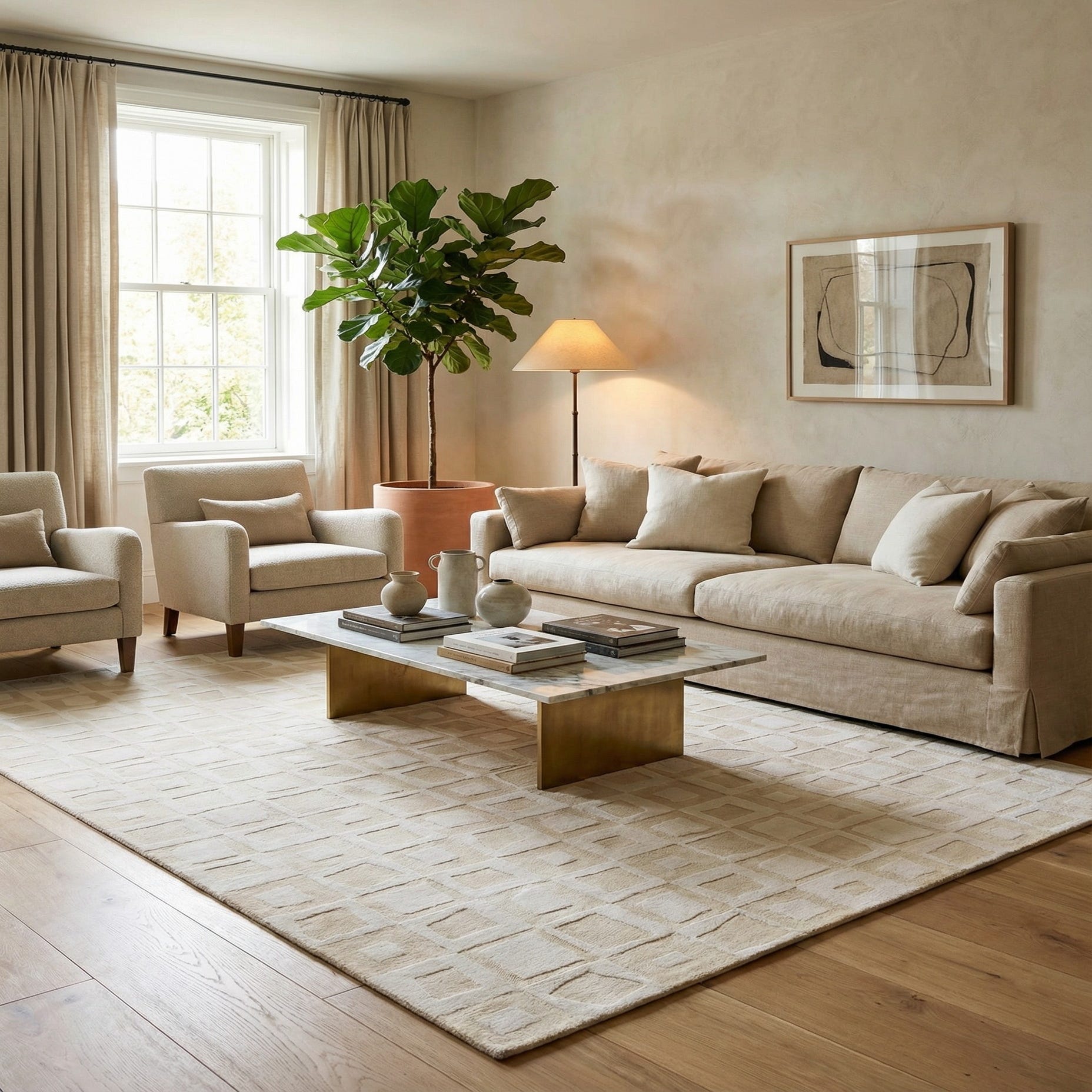 Primary color is Beige. Colors in this rug include: Beige, Cream.