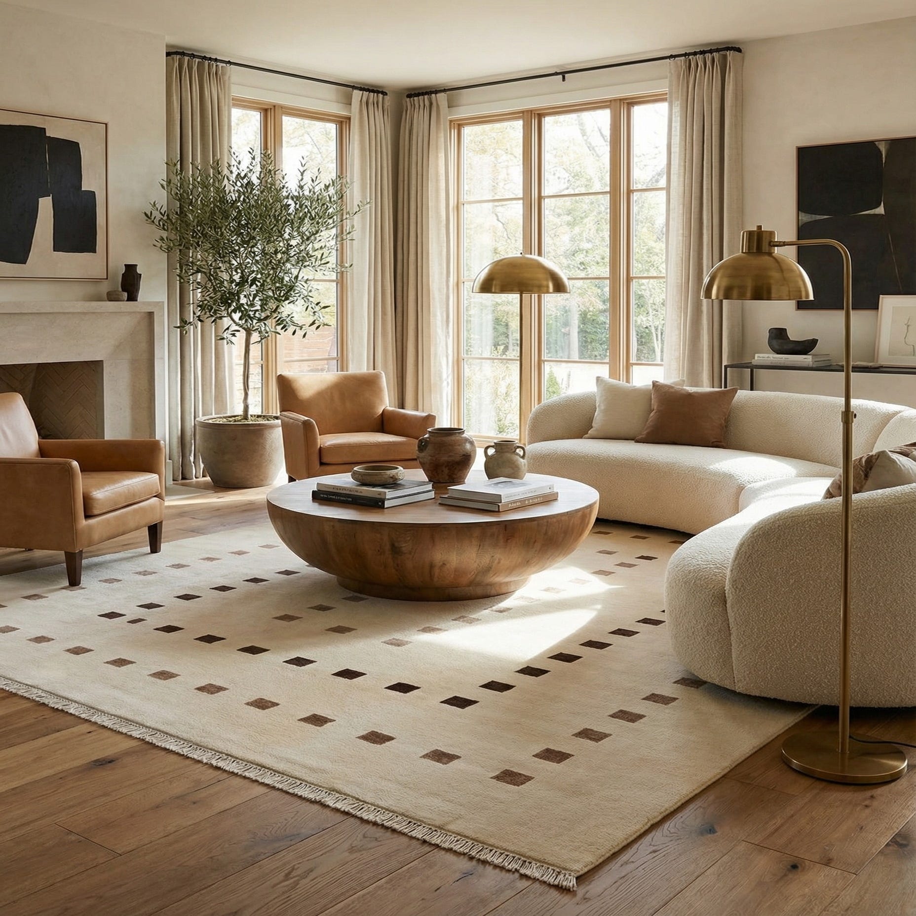 Primary color is Beige. Colors in this rug include: Beige, Brown, Light Brown, Tan.