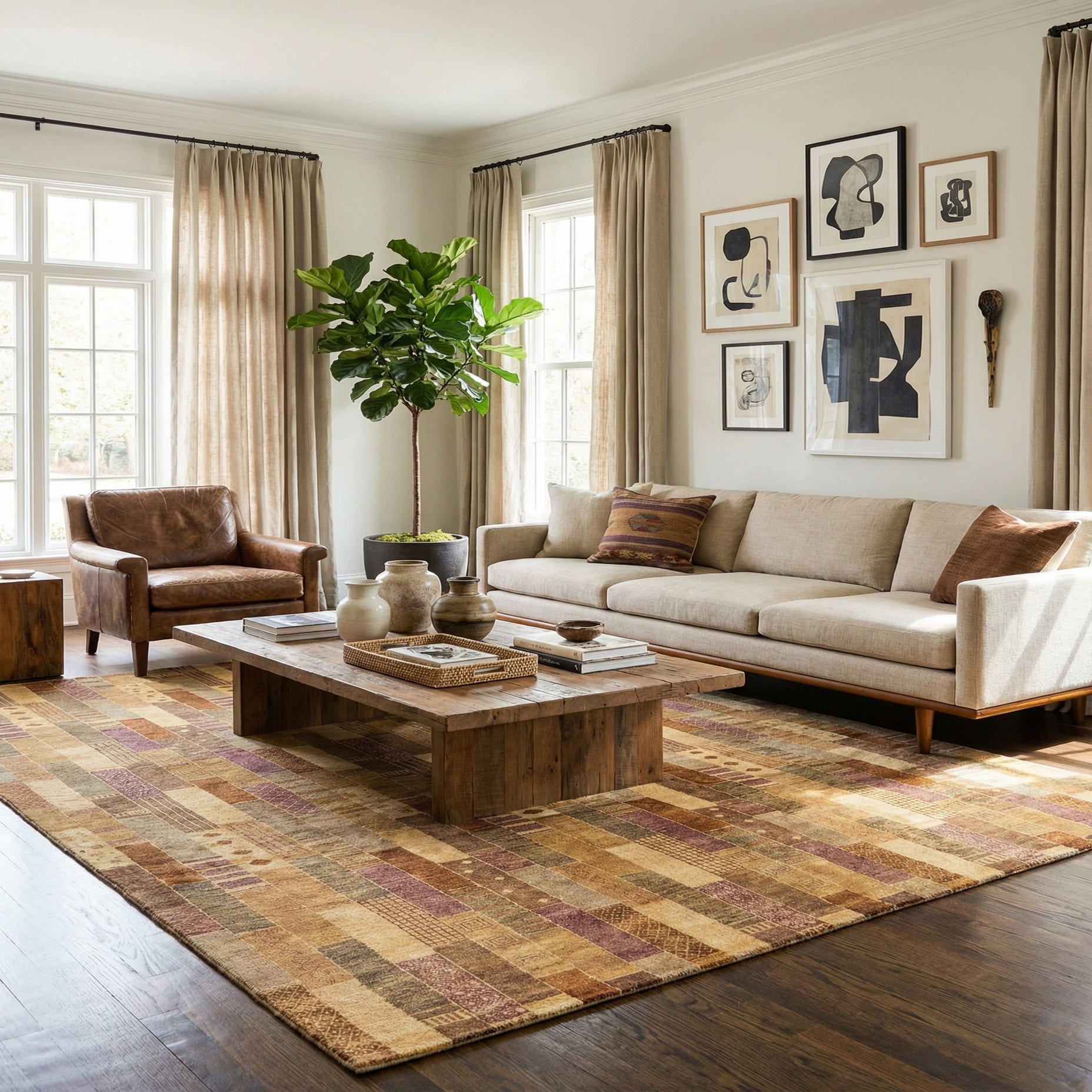 Primary color is Beige. Colors in this rug include: Beige, Brown.