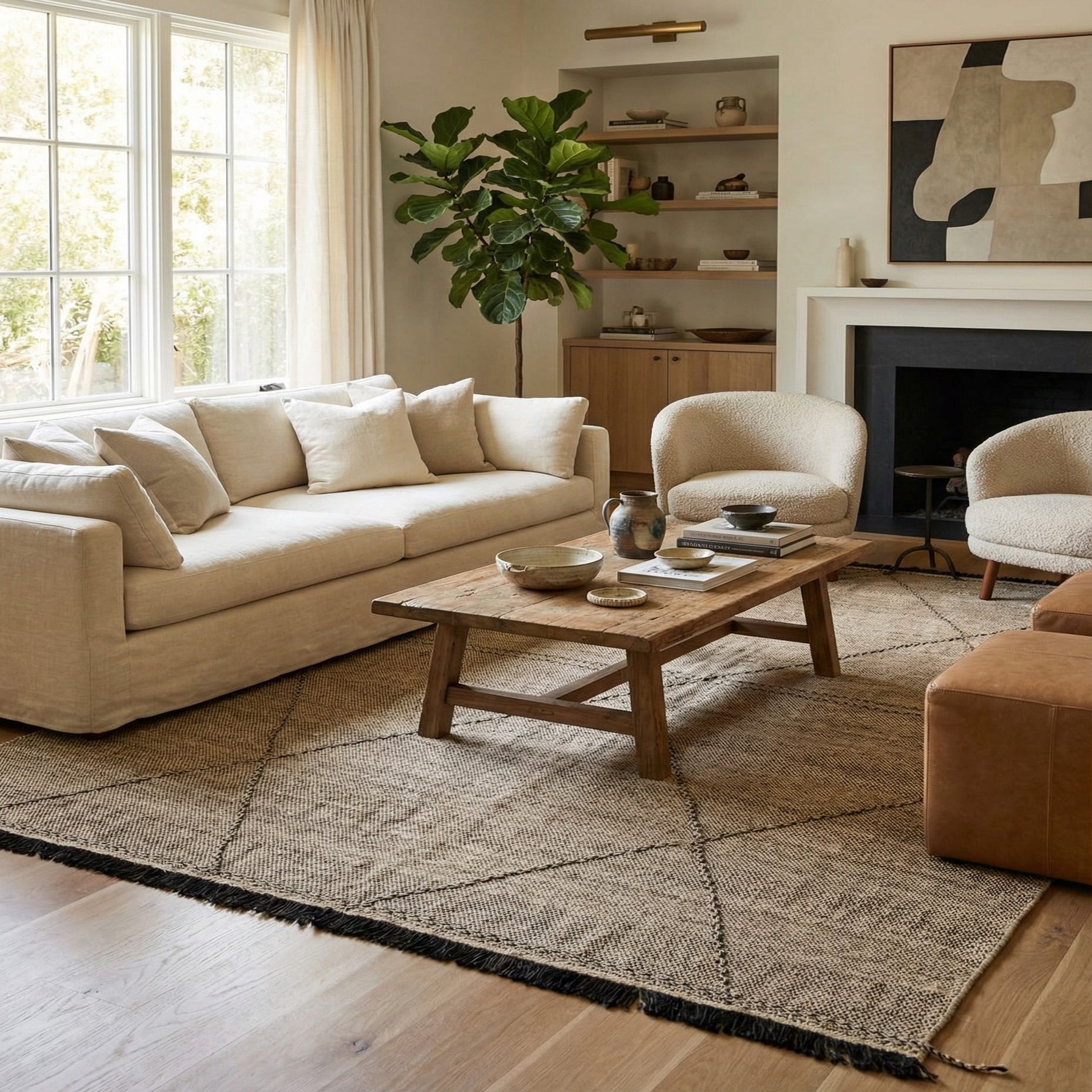 Primary color is Beige. Colors in this rug include: Beige, Brown.