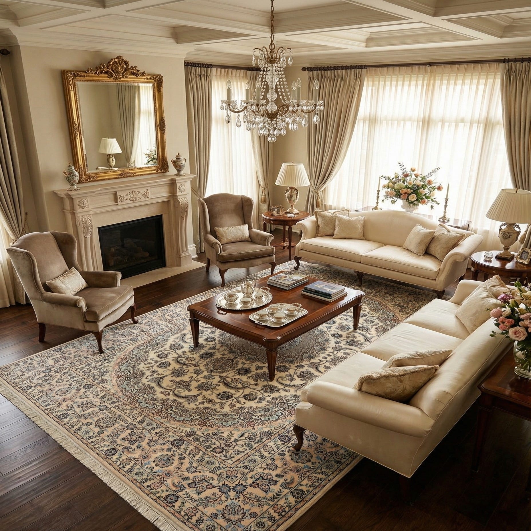 Primary color is Beige. Colors in this rug include: Beige, Brown.