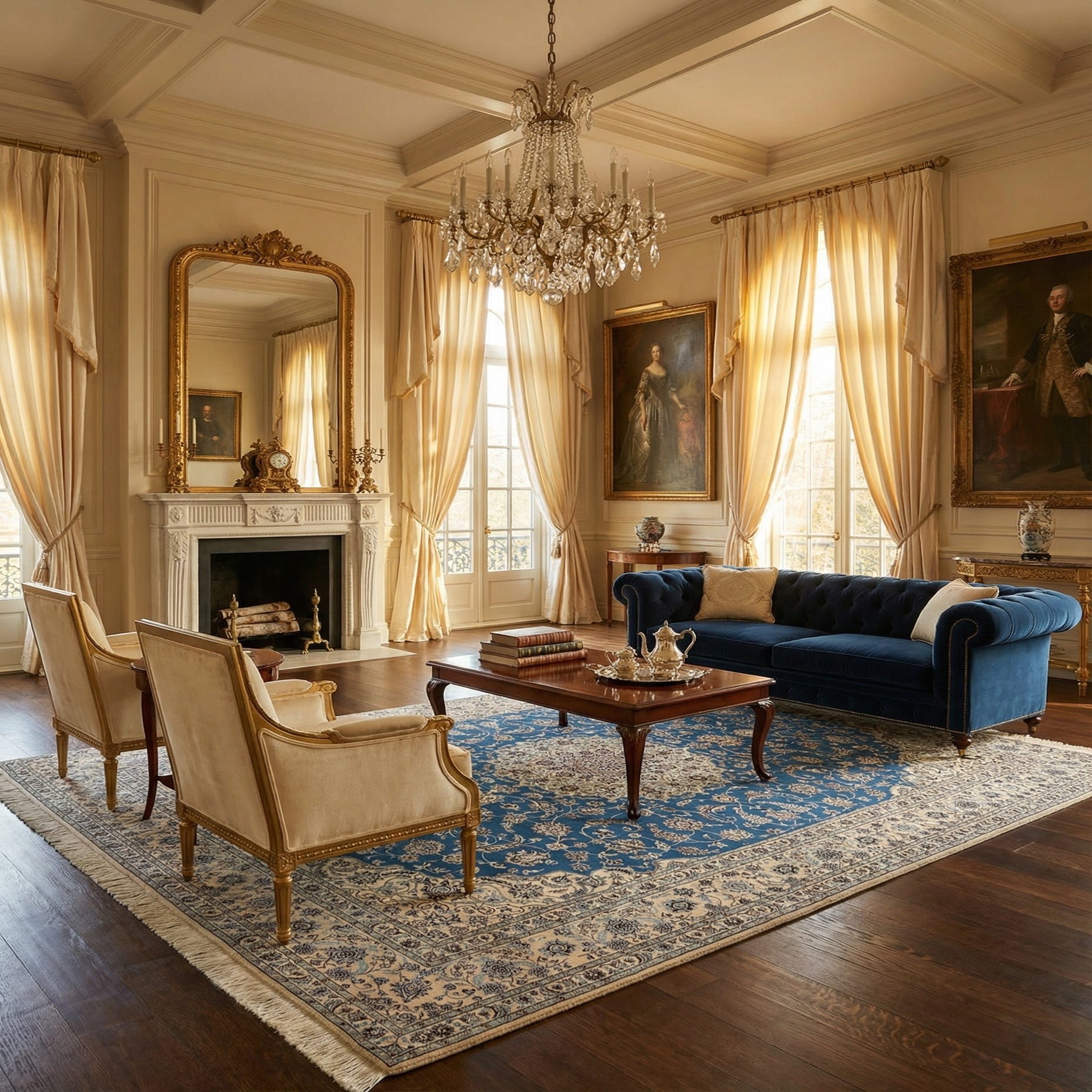 Primary color is Beige. Colors in this rug include: Beige, Blue.