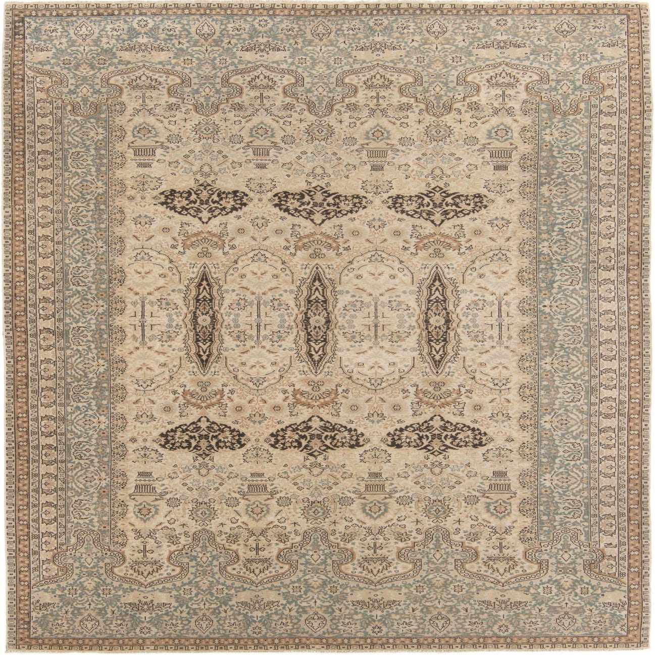Primary color is Beige. Colors in this rug include: Beige, Brown, Light Brown, Green.