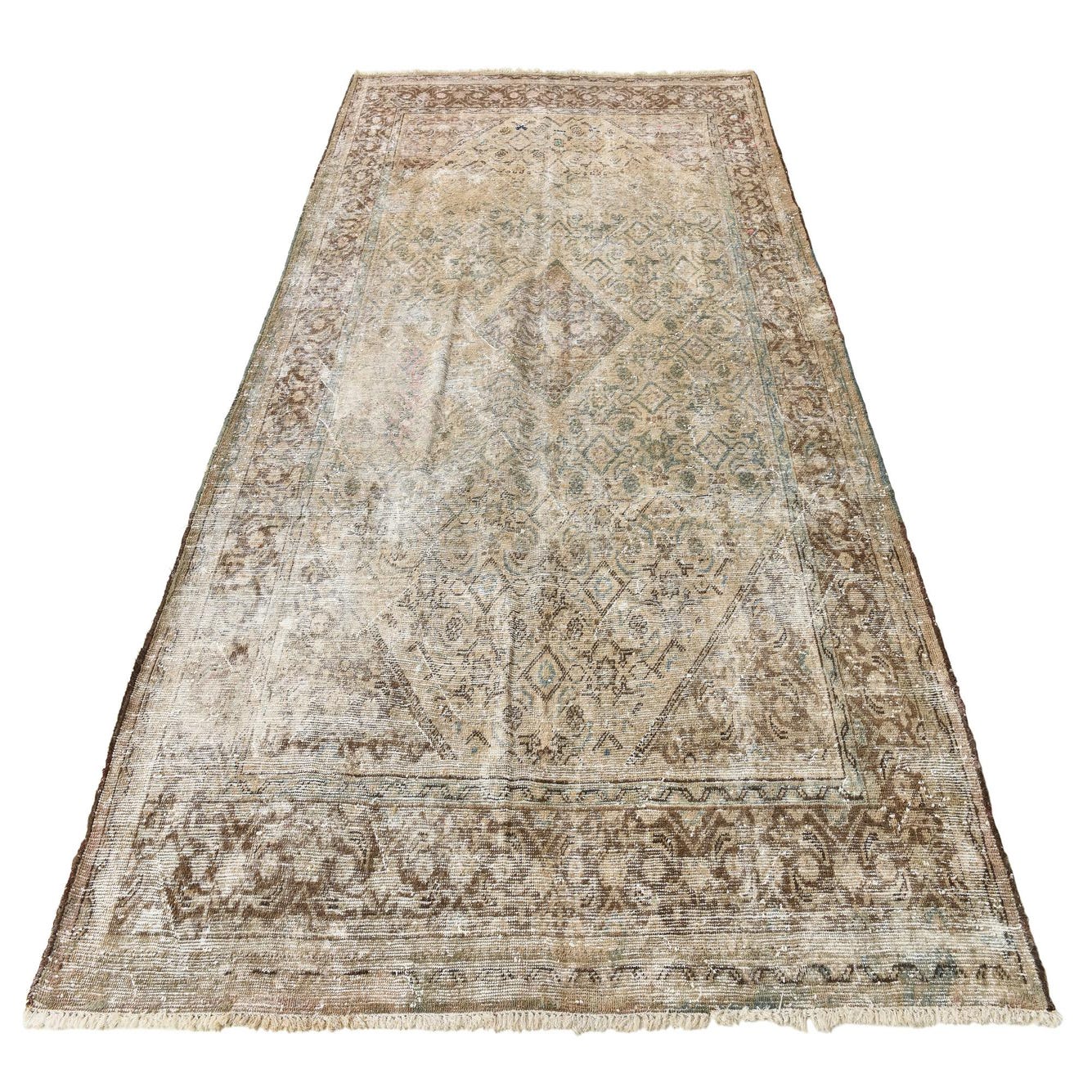This Persian Ultra Vintage rug is an antique Persian Rug that has been washed, over-dyed, and then shaved down to a low pile. Look at the detail pictures to fully appreciate the uniqueness of this piece.
