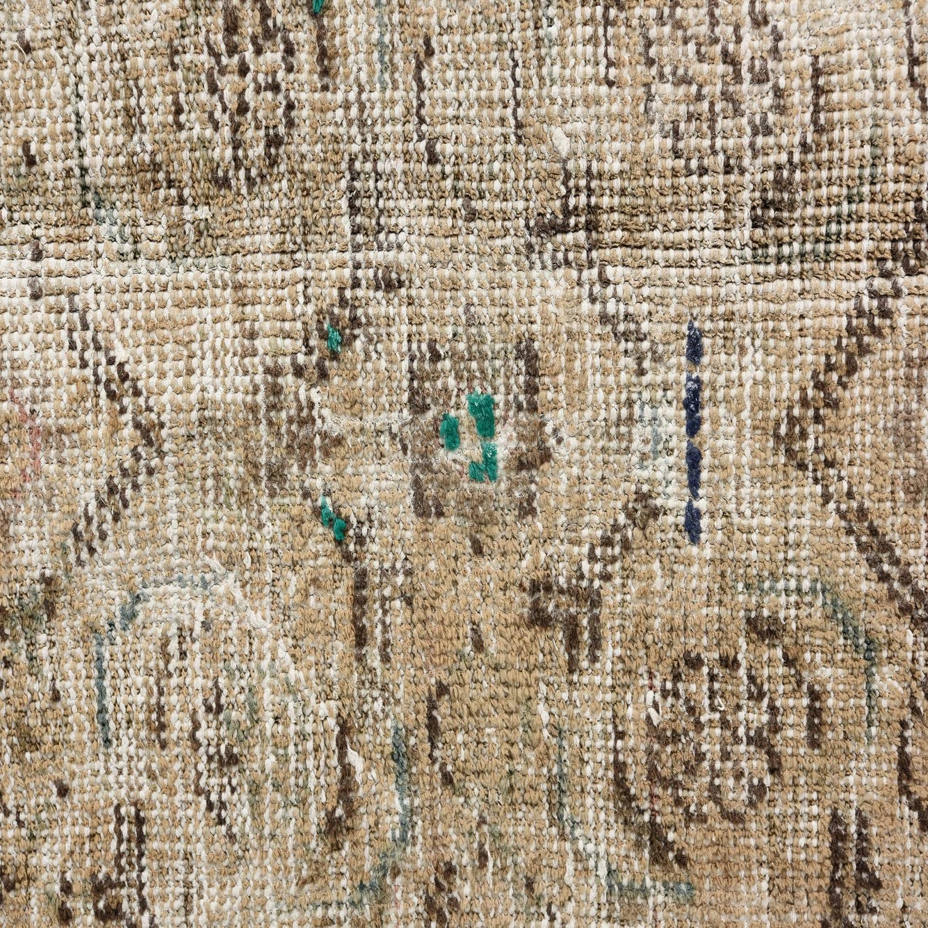 Primary color is Beige. Colors in this rug include: Beige, Brown, Ivory, Navy Blue.