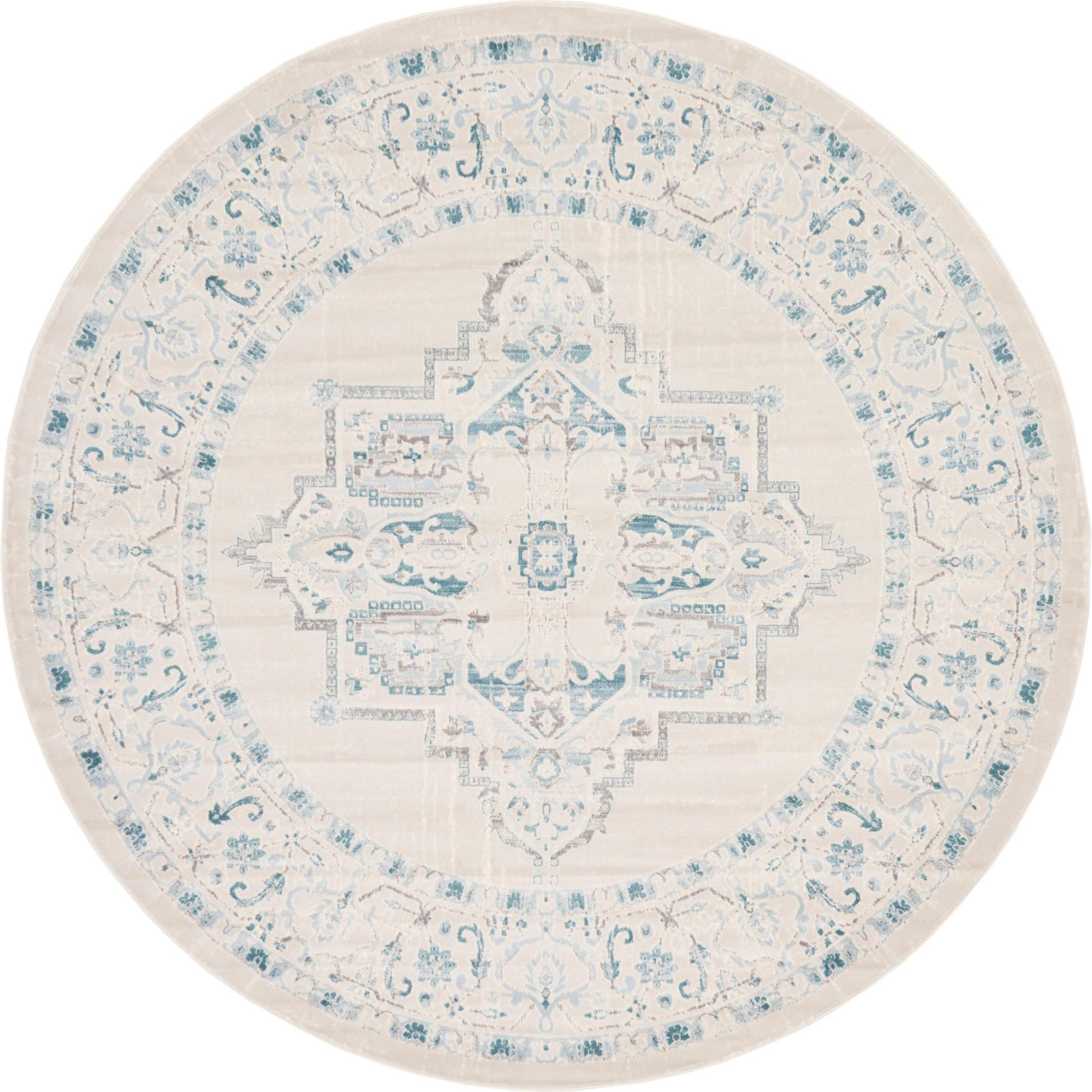 Primary color is Beige. Colors in this rug include: Beige, Gray, Ivory, Light Blue.