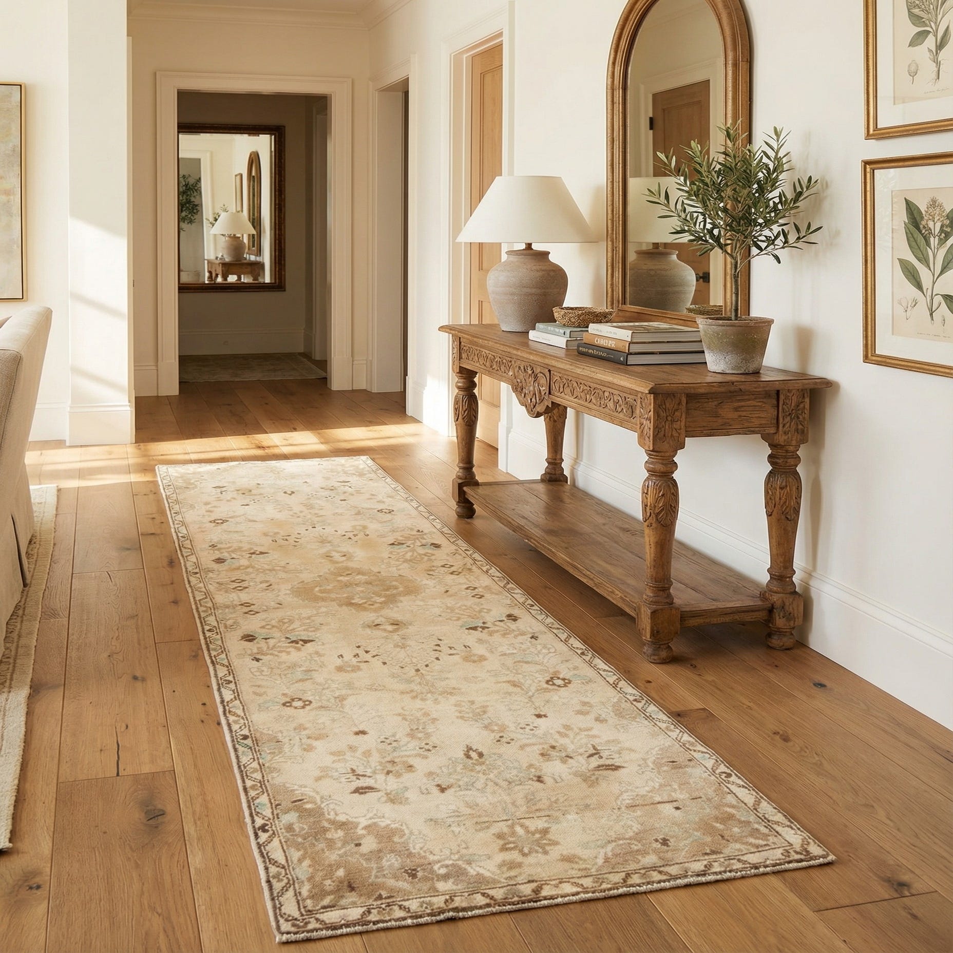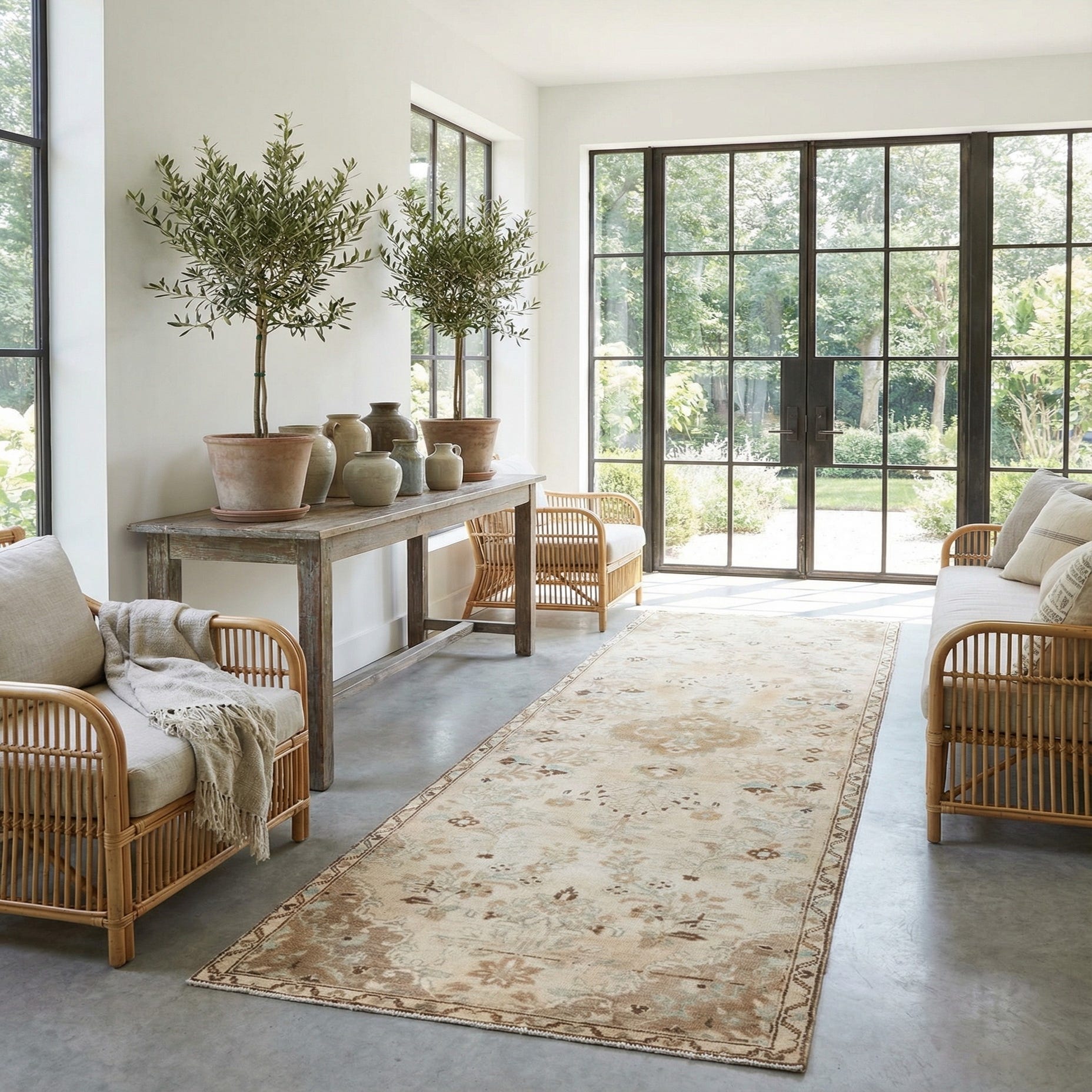 Primary color is Beige. Colors in this rug include: Beige, Cream, Brown, Light Blue.