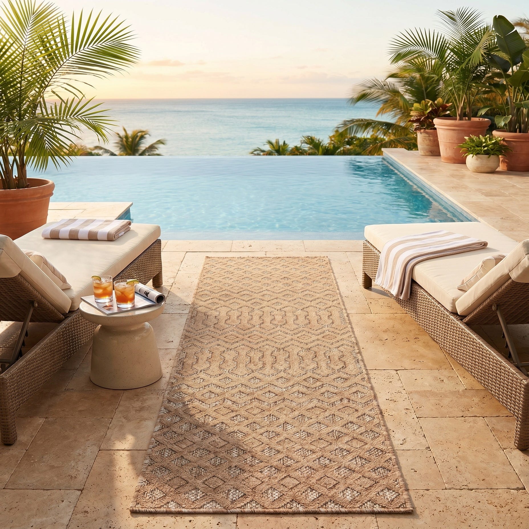 2' x 8' Easy-Clean Trellis Textured Indoor / Outdoor Runner Rug