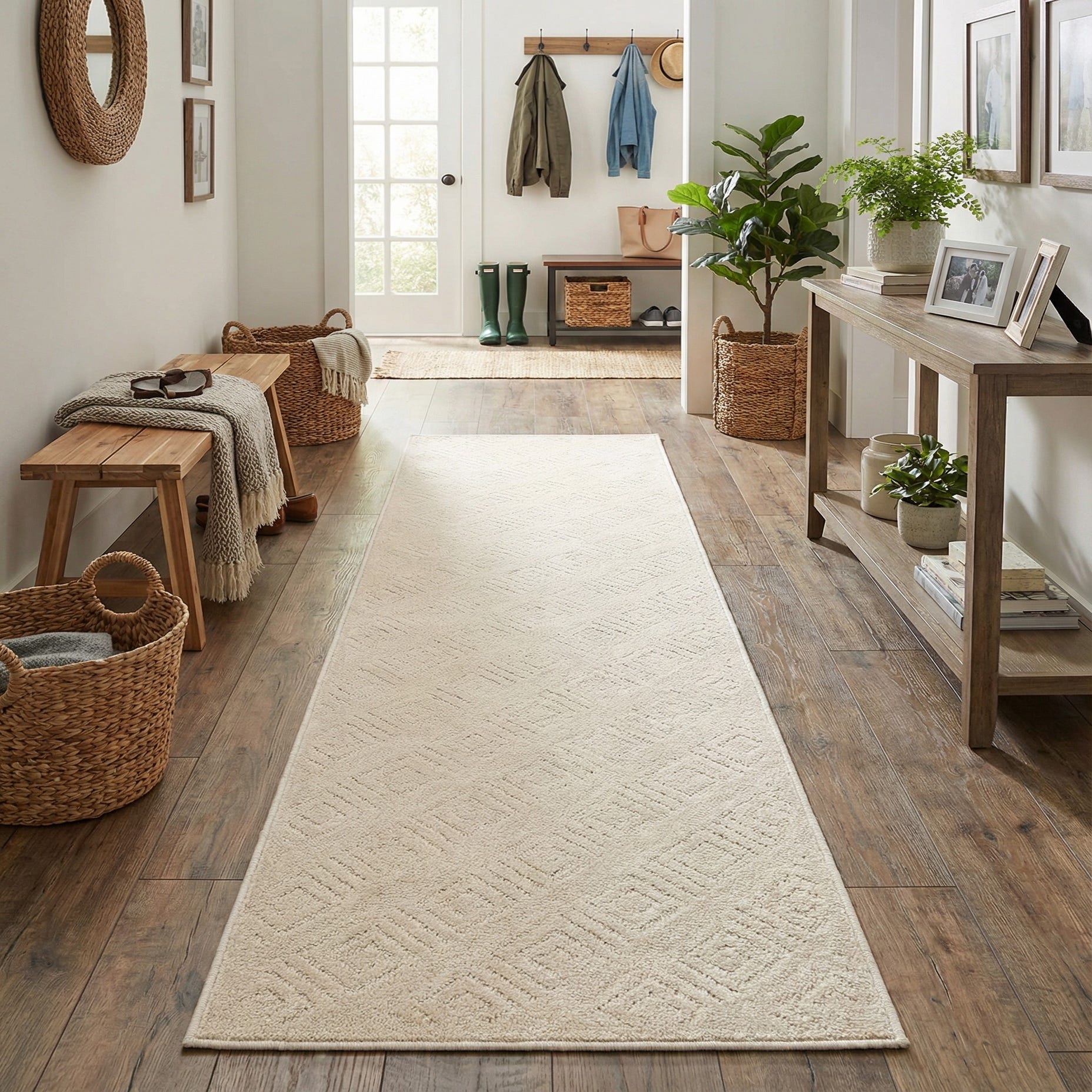Primary color is Beige. Colors in this rug include: Beige, Ivory.