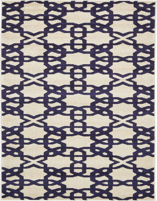 Primary color is Beige. Colors in this rug include: Beige, Navy Blue.