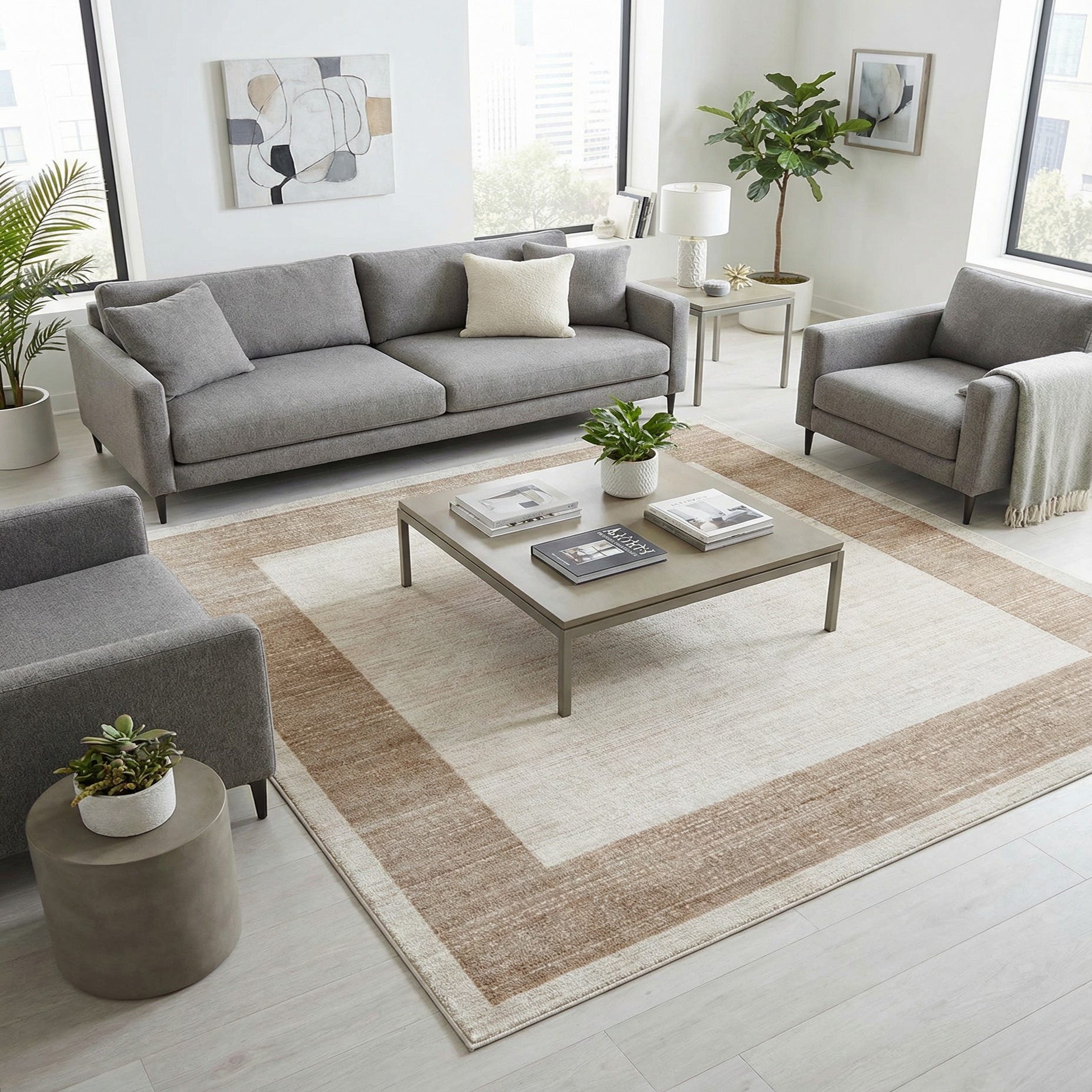 Primary color is Beige. Colors in this rug include: Beige, Gray.