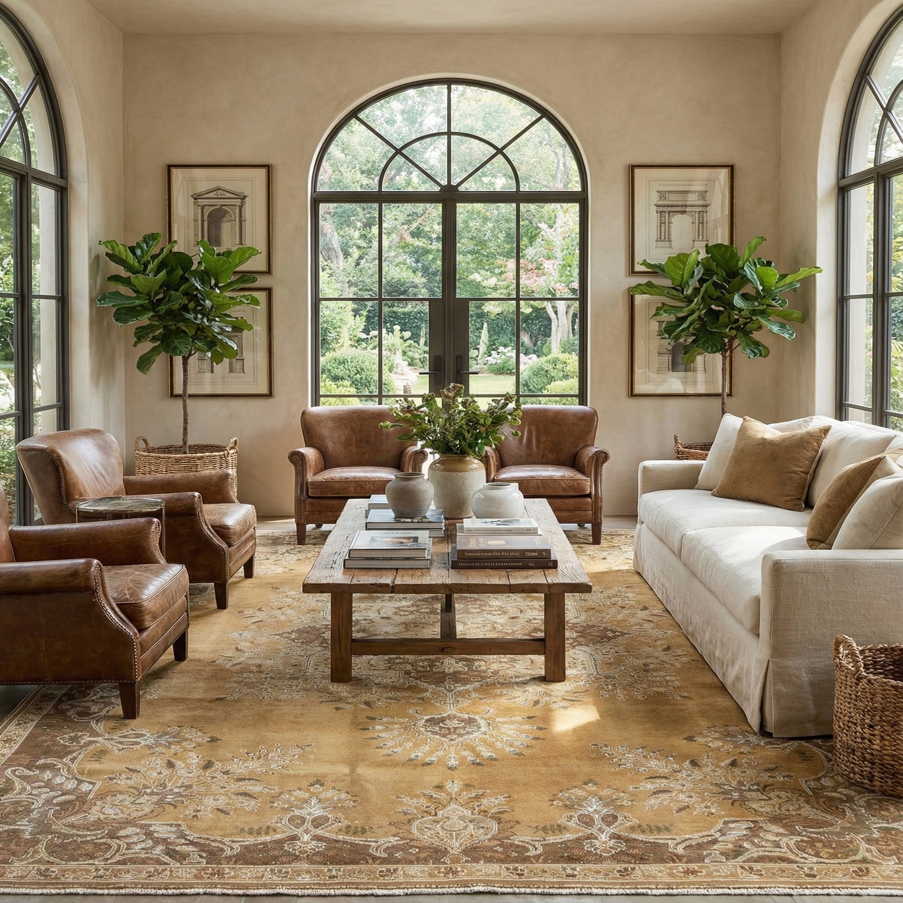 Primary color is Beige. Colors in this rug include: Beige, Brown.