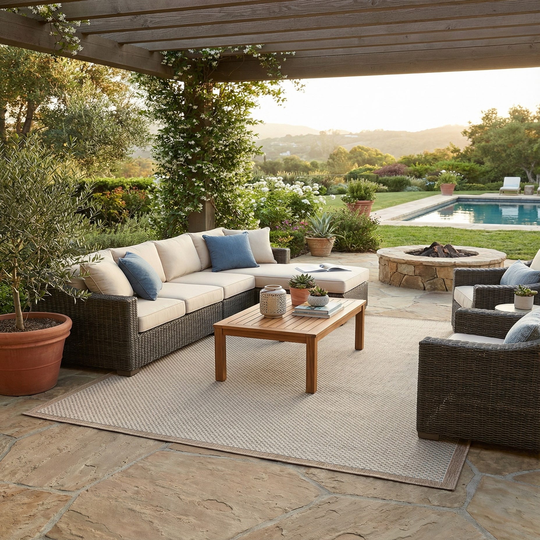 7' 10 x 10' Easy-Clean Border Indoor / Outdoor Rug