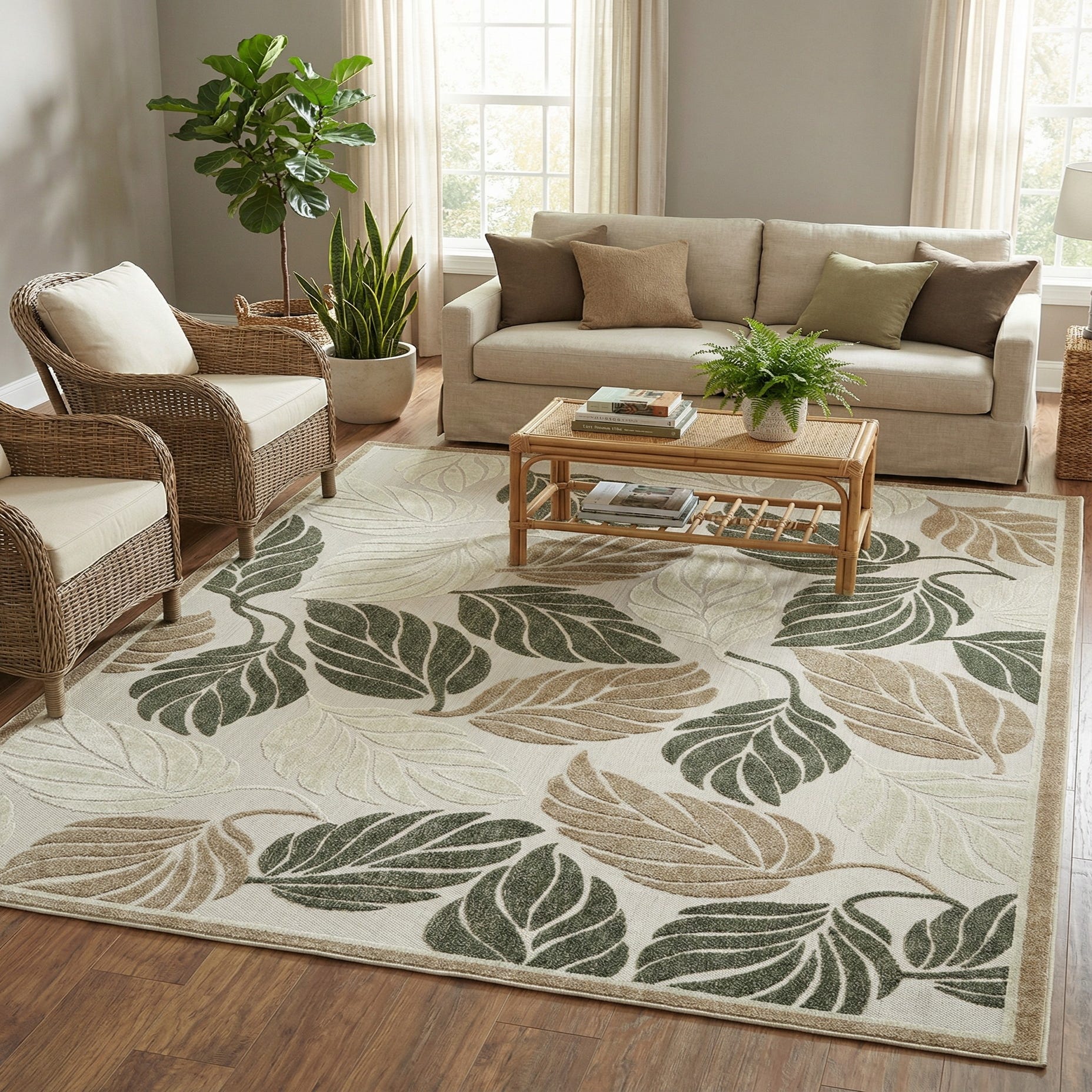 8' x 10' Washable Botanical Indoor / Outdoor Rug