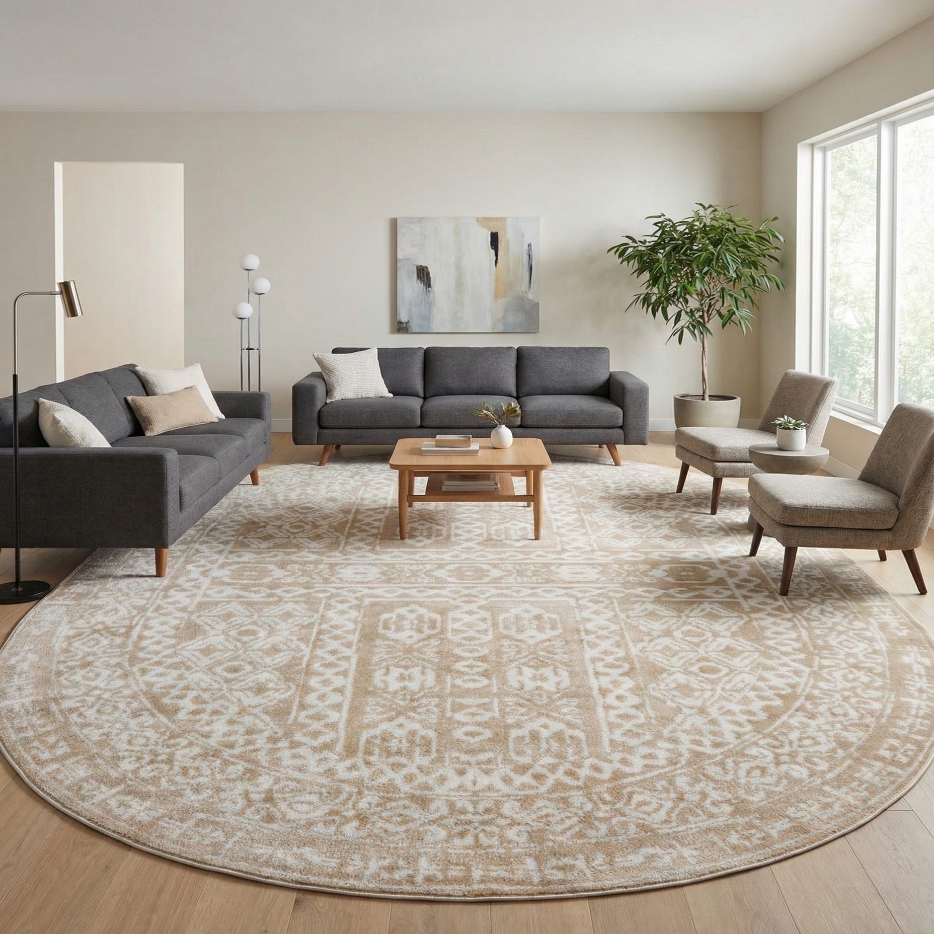 Primary color is Beige. Colors in this rug include: Beige, Ivory.