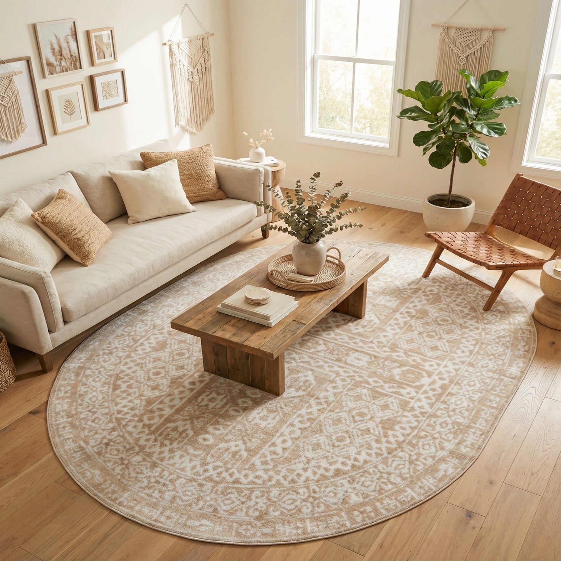 Primary color is Beige. Colors in this rug include: Beige, Ivory.