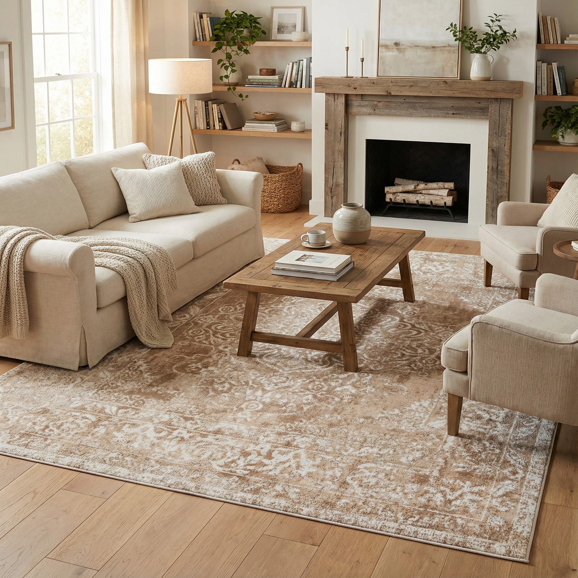 Primary color is Beige. Colors in this rug include: Beige, Ivory.