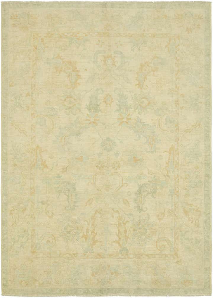 Primary color is Beige. Colors in this rug include: Beige, Light Blue, Light Brown, Light Green.