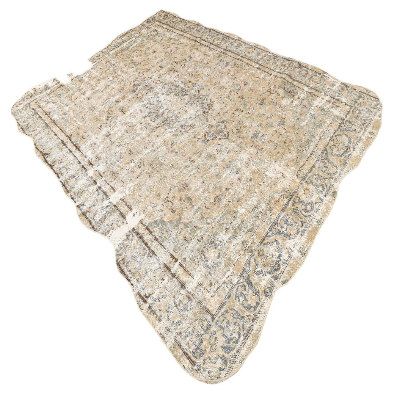 This Persian Ultra Vintage rug is an antique Persian Rug that has been washed, over-dyed, and then shaved down to a low pile. Look at the detail pictures to fully appreciate the uniqueness of this piece.