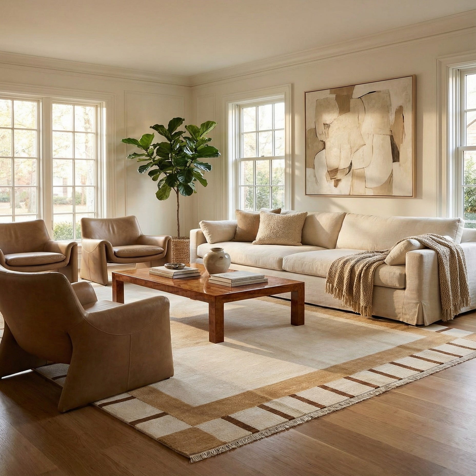 Primary color is Beige. Colors in this rug include: Beige, Brown, Cream, Light Brown.