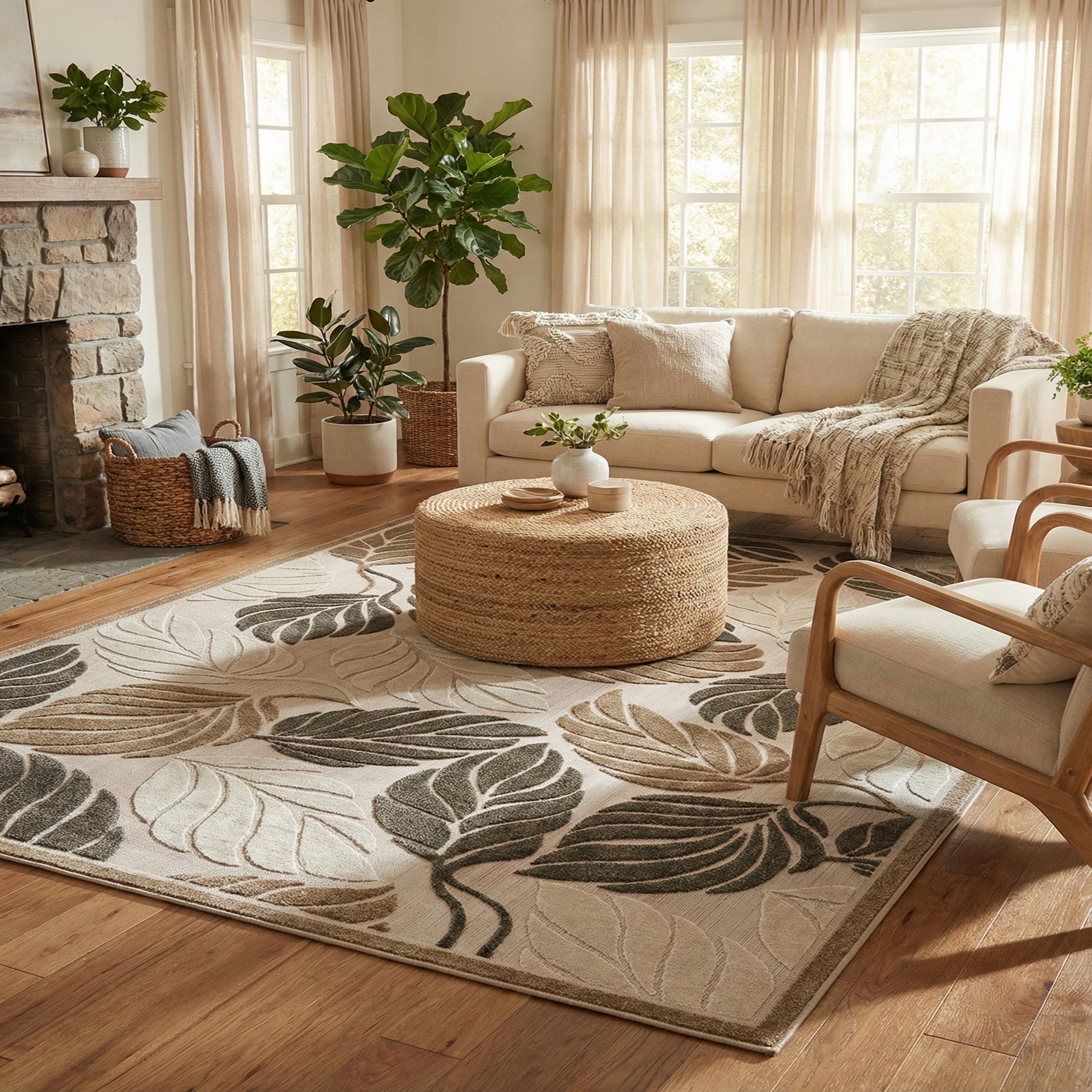 7' 10 x 11' Washable Botanical Indoor / Outdoor Rug
